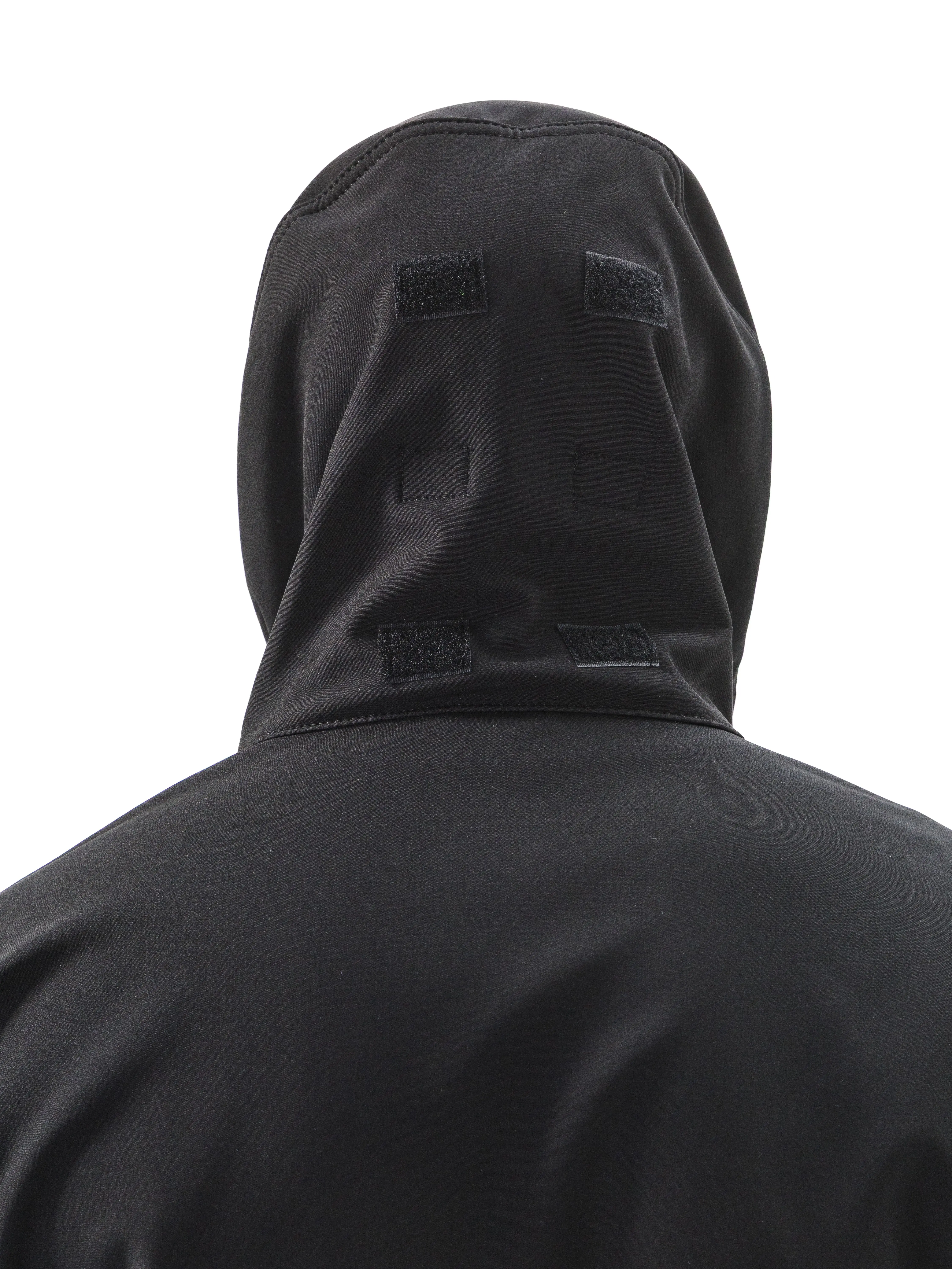 - на затылочной части капюшона расположены липучки для его сворачивания с помощью навесного клапана, расположенного с внутренней стороны куртки;
