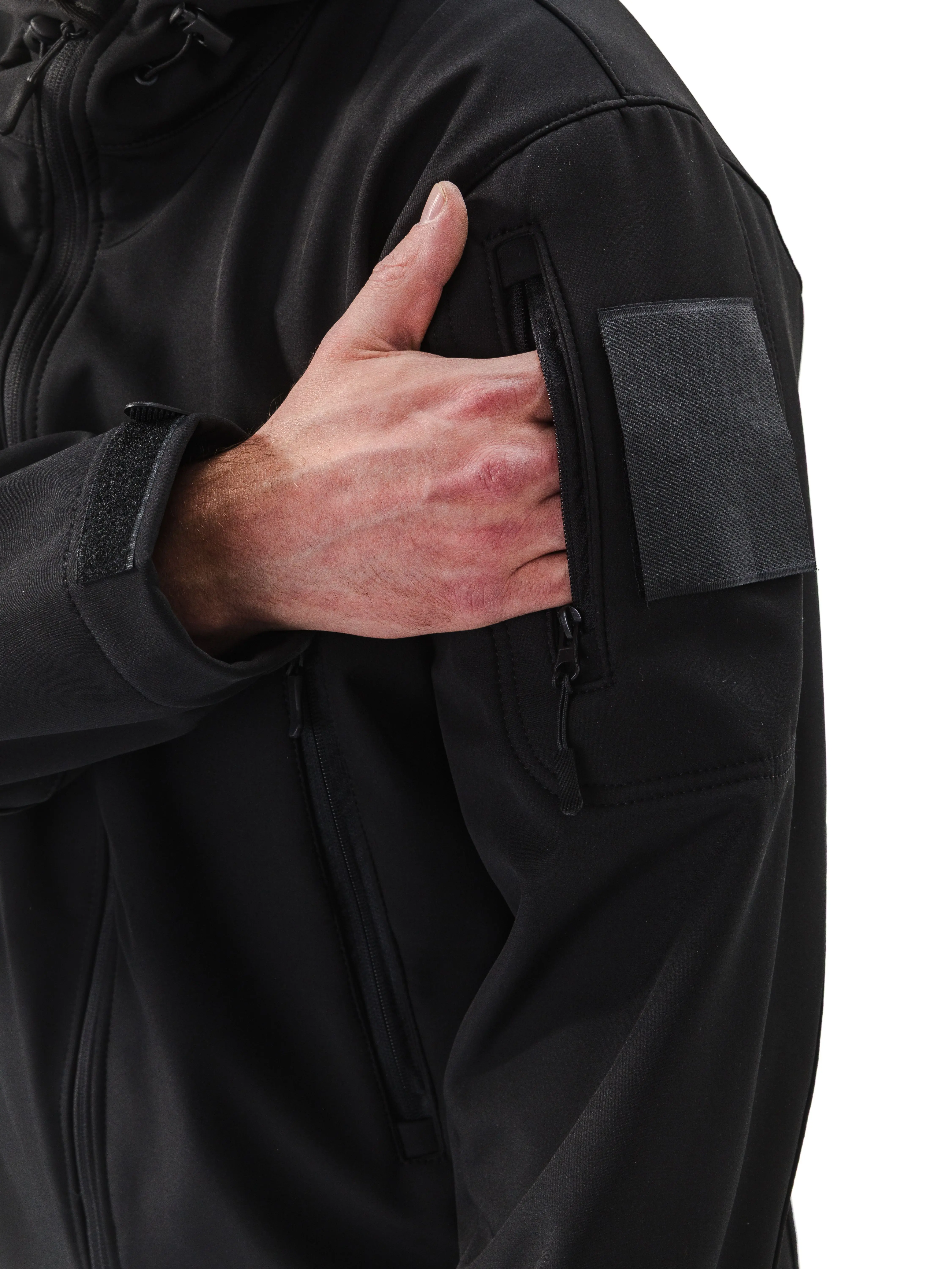 - прорезные карманы в рамку на рукавах со входом на молнию и ограничителями с двух сторон для замка, на кармане широкая липучка под шеврон;
