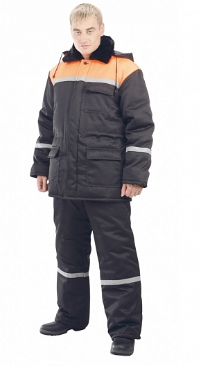 Куртка +брюки с СОП (чёрный с оранжевой отделкой) для людей работающих на открытом воздухе при пониженных температурах.