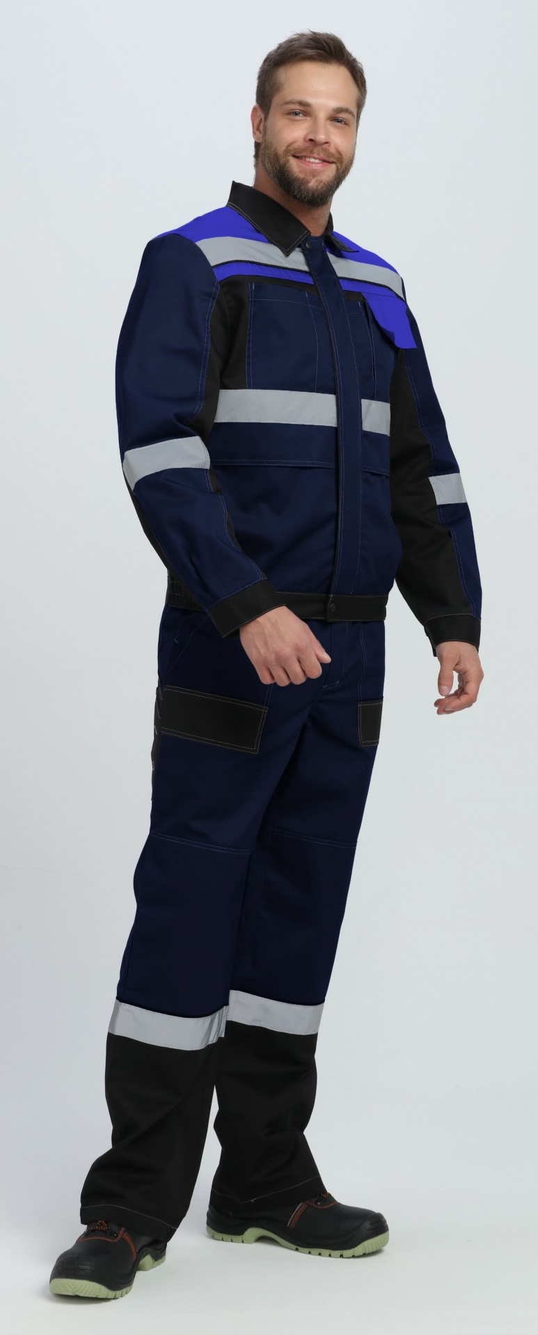 - по кокеткам, полочкам, спинке, рукавам и брючинам расположены световозвращающие полосы, что позволяет использовать костюм в условиях плохой видимости
