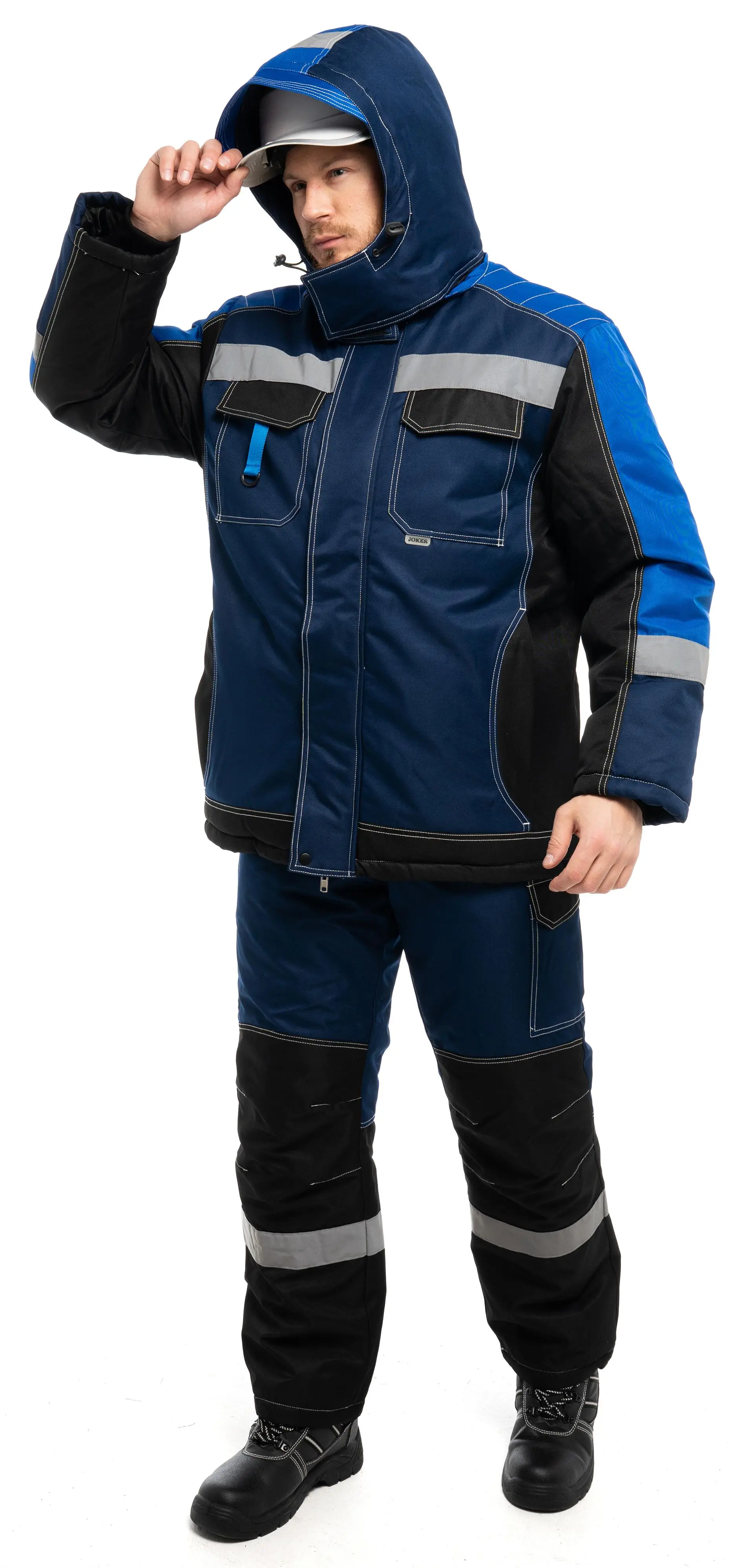 - съёмный капюшон с регулировкой объёма по лицевой и затылочной части и возможностью использования капюшона на каску