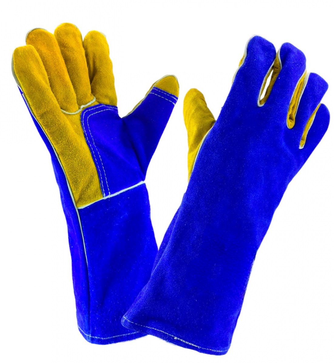 - На ладони и большом пальце дополнительное усиление из желтого спилка, что увеличивает износоустойчивость и защитные свойства при механических работах и увеличивает защиту от повышенных температур, брызг и расплавленного металла.