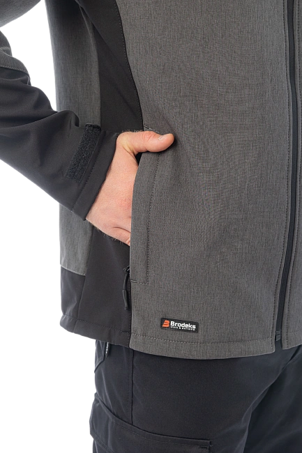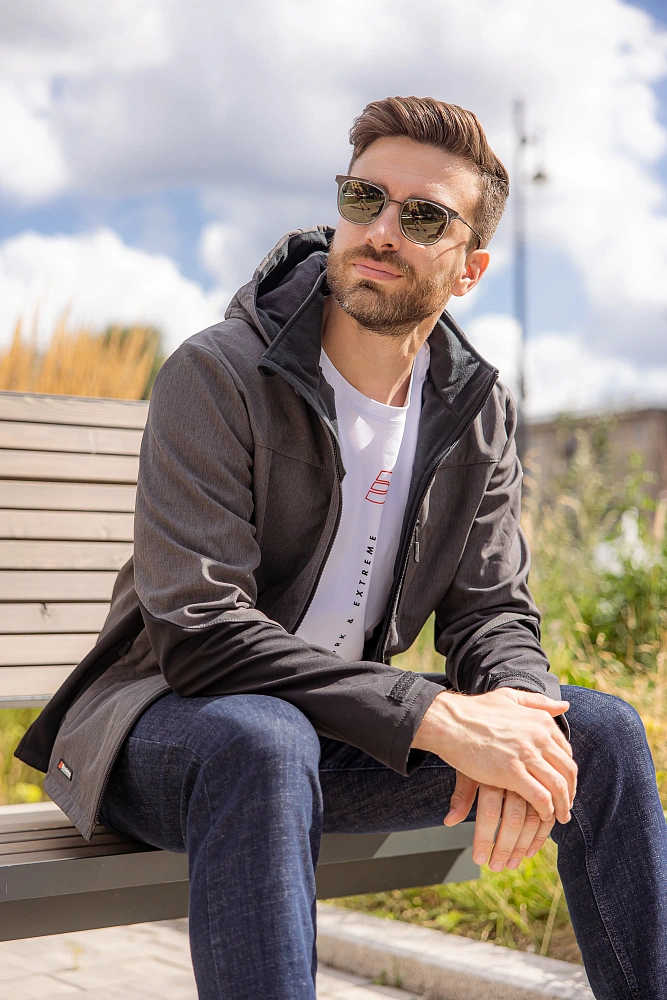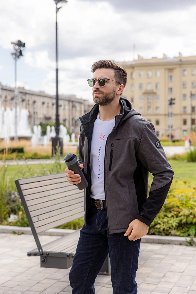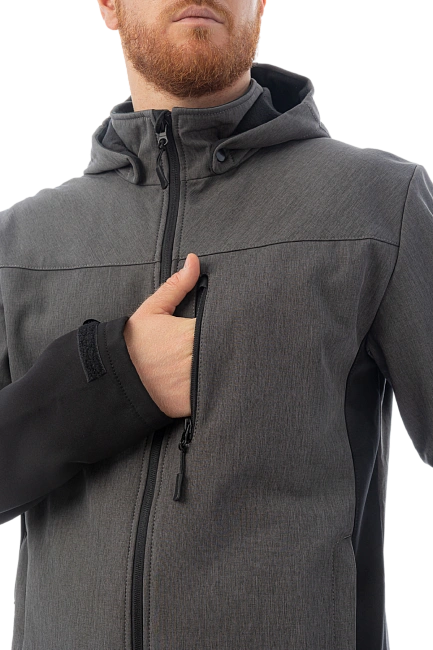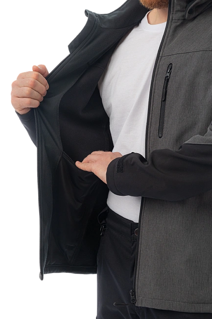 Куртка сшита из уникального из современного материала софтшелл с мембранной прослойкой. Внешний слой из полиэстера с DWR-пропиткой защищает от холодного ветра и осадков. Внутренний флисовый слой обеспечивает воздухопроницаемость, отводит лишнюю влаги от тела и сохраняет тепло. Материал тянется в 4 направлениях. Куртка лёгкая, комфортная, позволяет активно двигаться.
