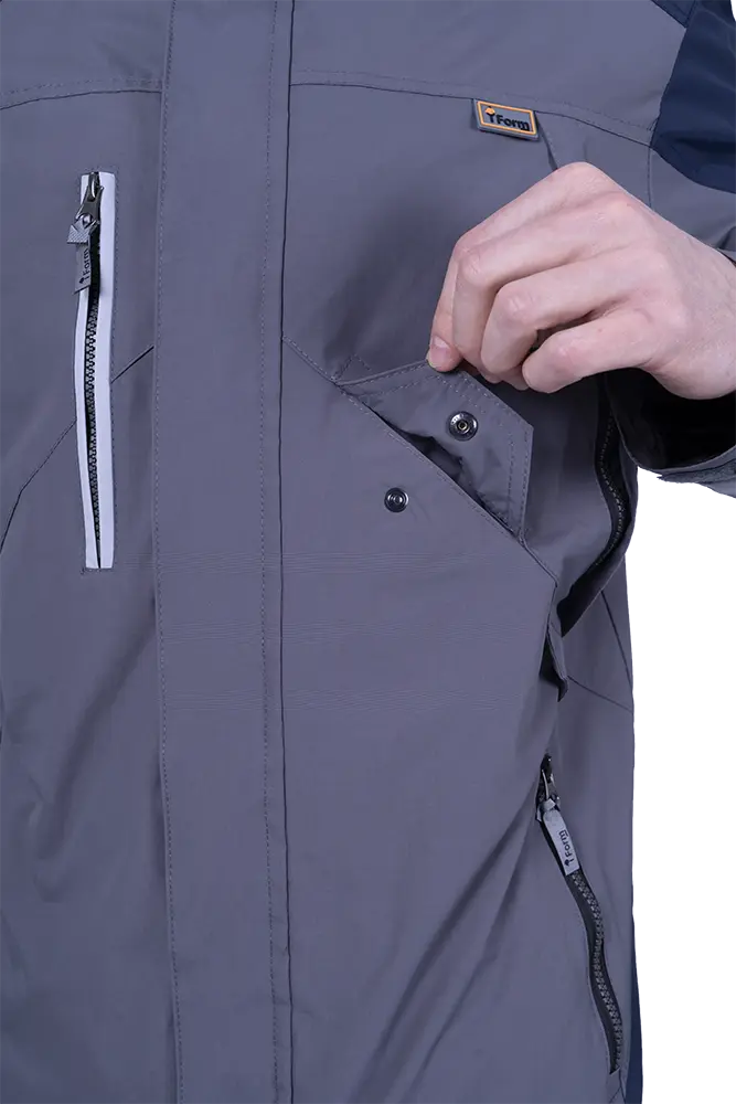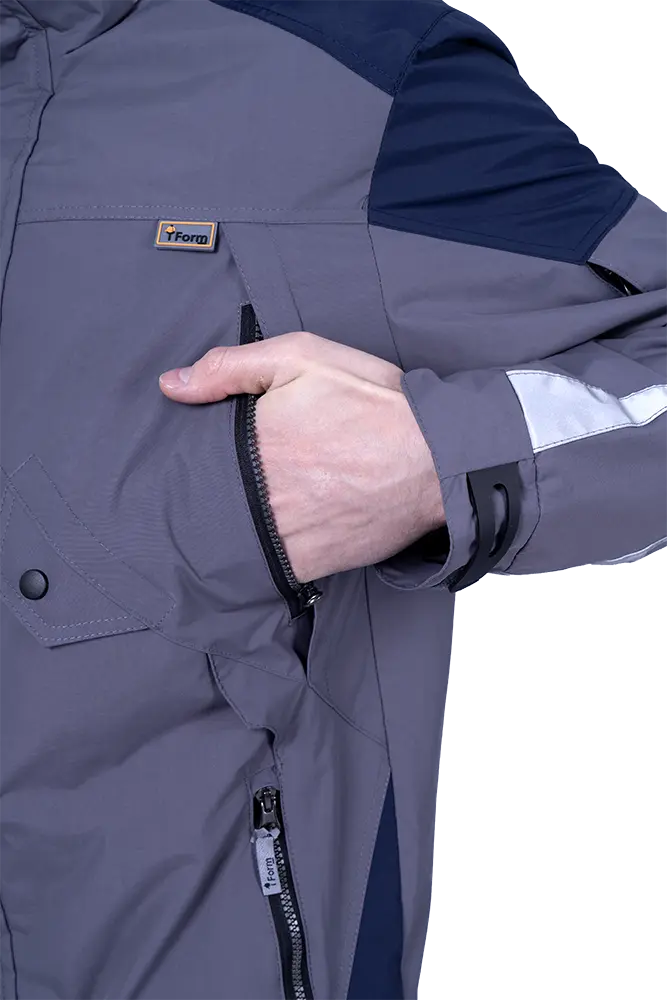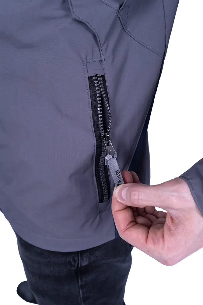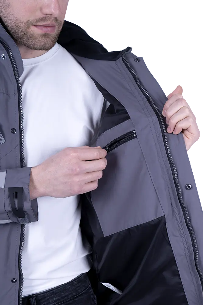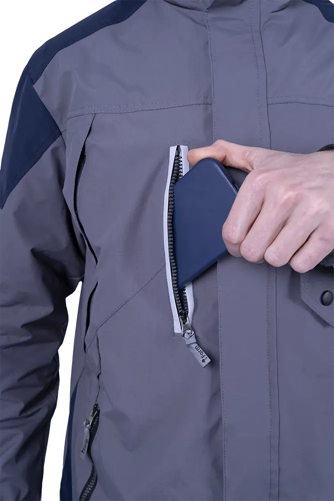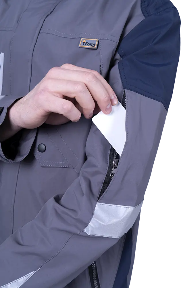 - Семь внешних карманов: шесть карманов с застёжкой на молнию, включая карман на левом рукаве; один карман с клапаном с застёжкой на кнопку