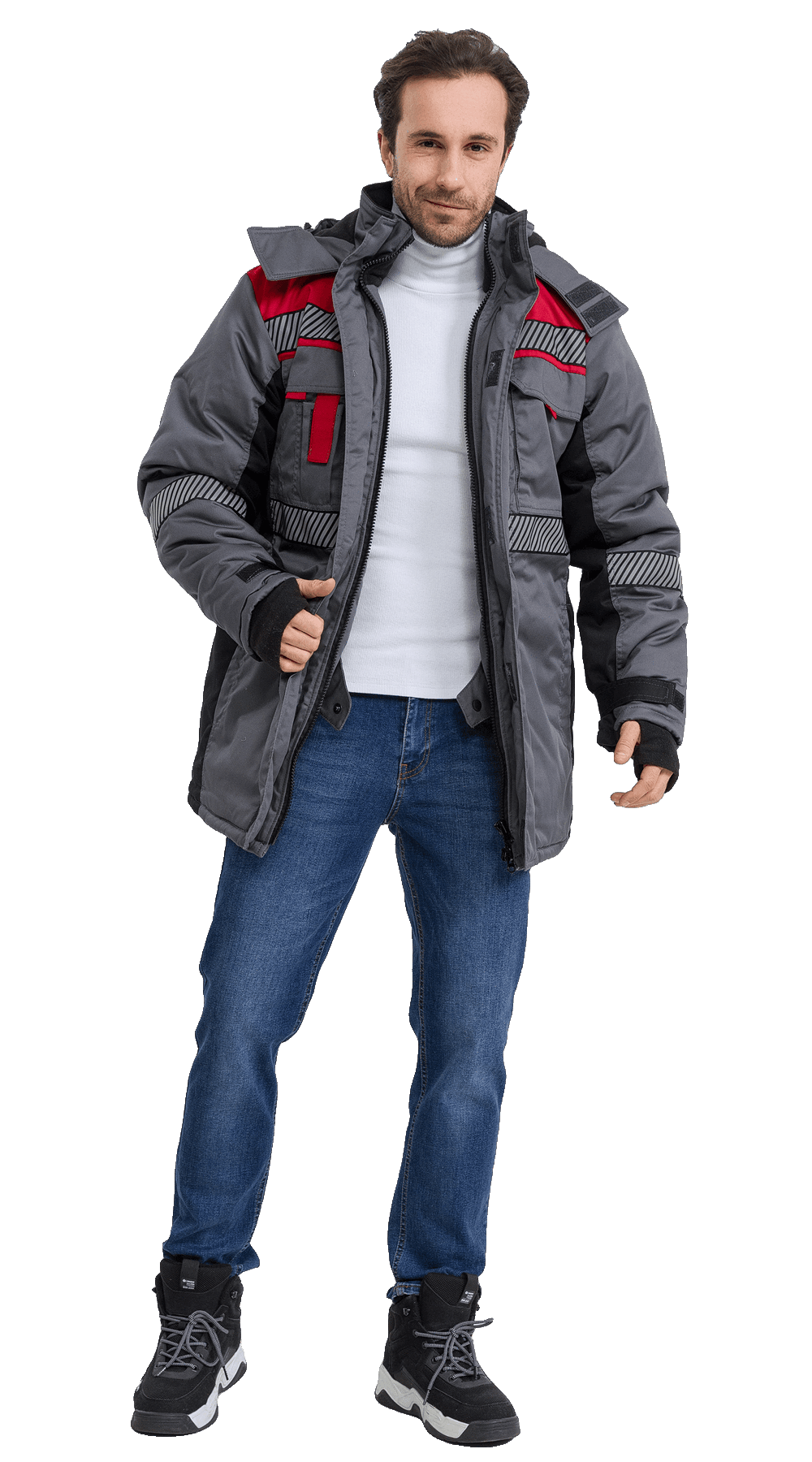 Курта утепленная мужская RONTA KR585 c СОП предназначена для защиты от общих производственных загрязнений и механических воздействий, имеет 4 класс защиты от пониженных температур воздуха и ветра, для эксплуатации в I, II, III, IV и особом климатических поясах.