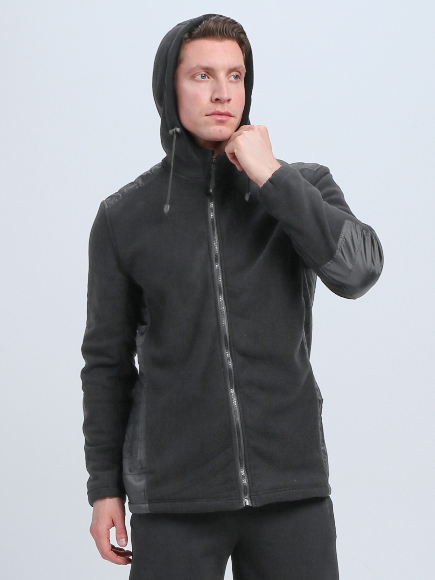 - из флисового полотна прямого силуэта с капюшоном, с центральной застежкой на молнию. По верху молнии с защитной планкой, с перегибом