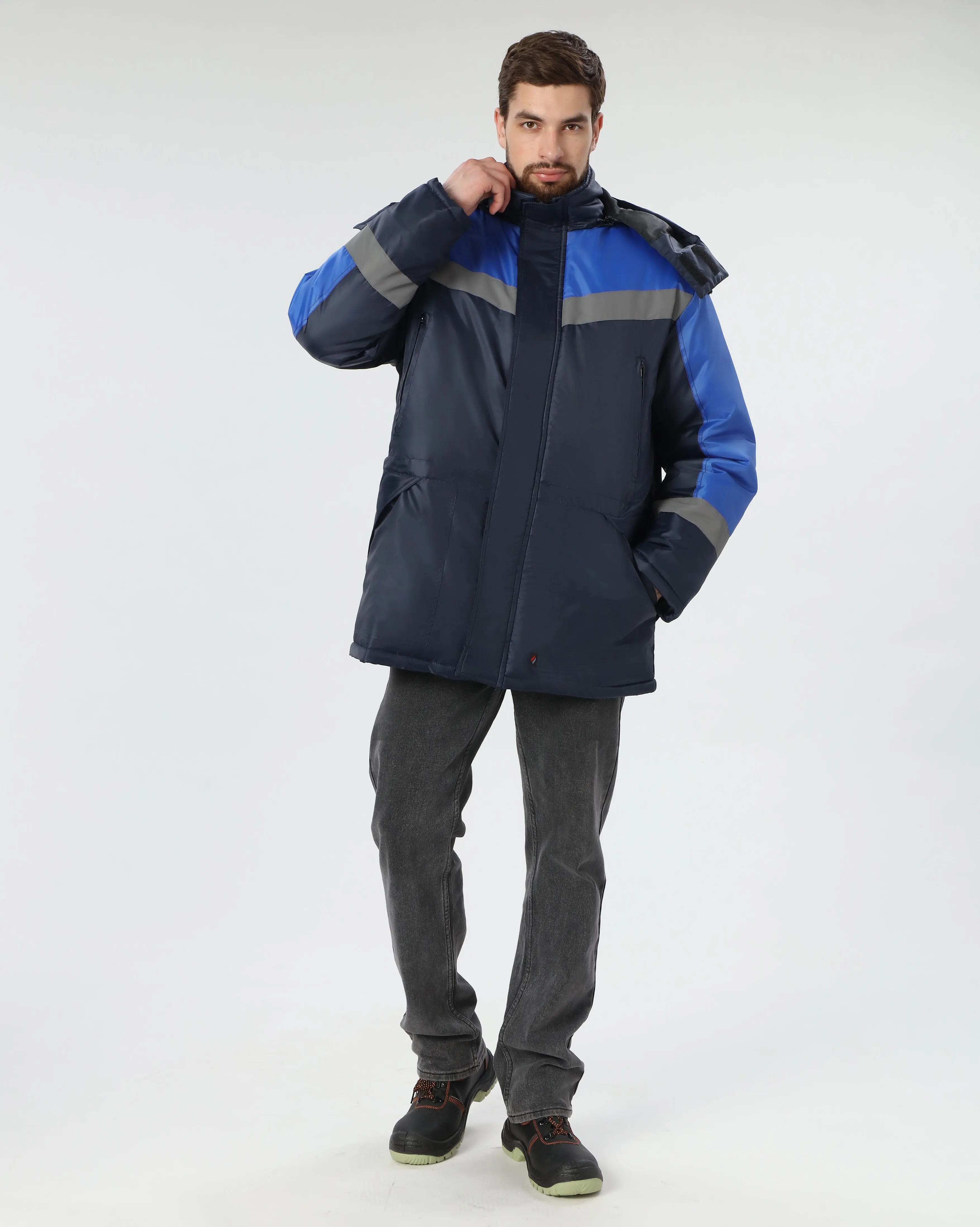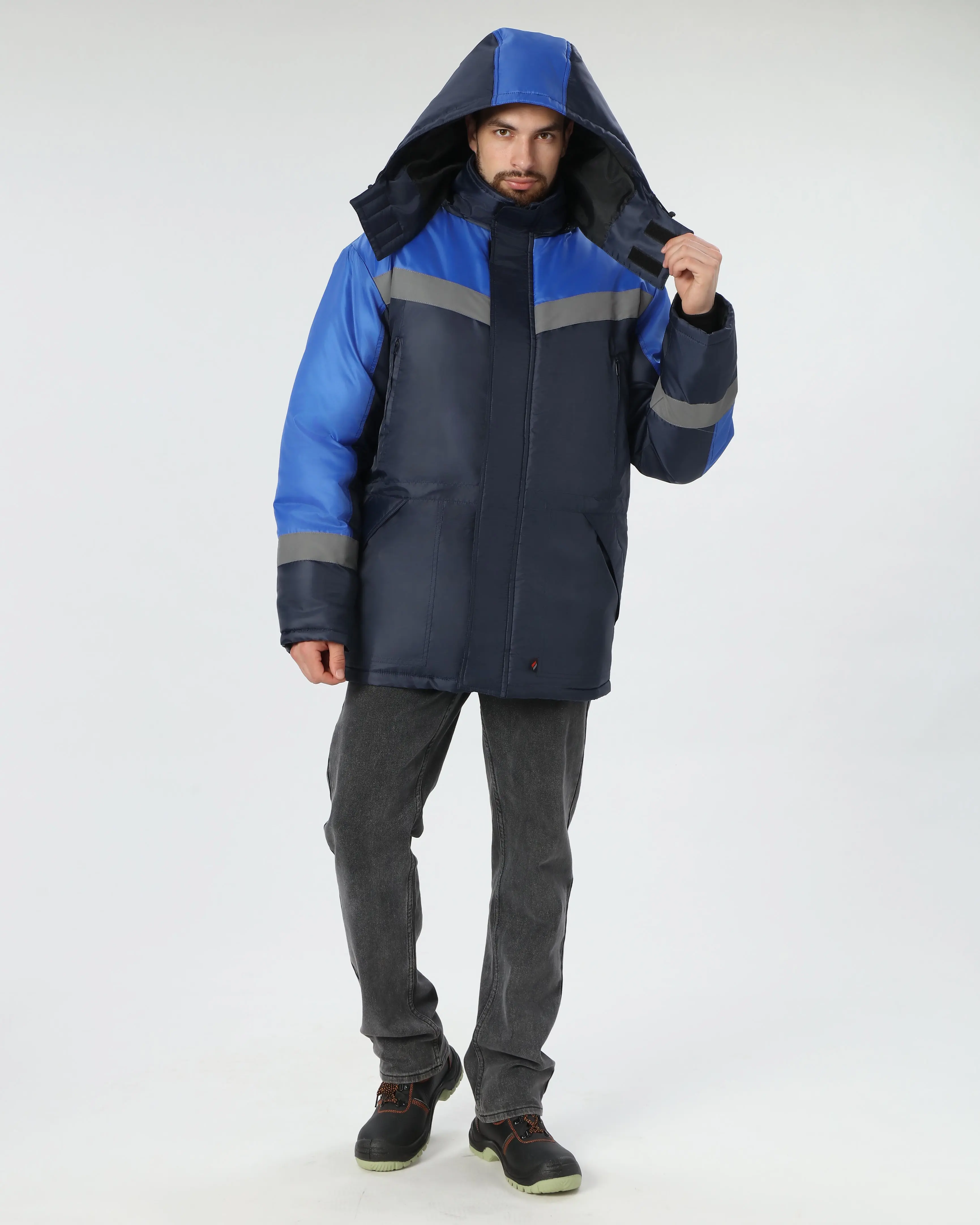 - Светоотражающие полосы (50 мм) по шву притачивания для безопасности в темное время суток.