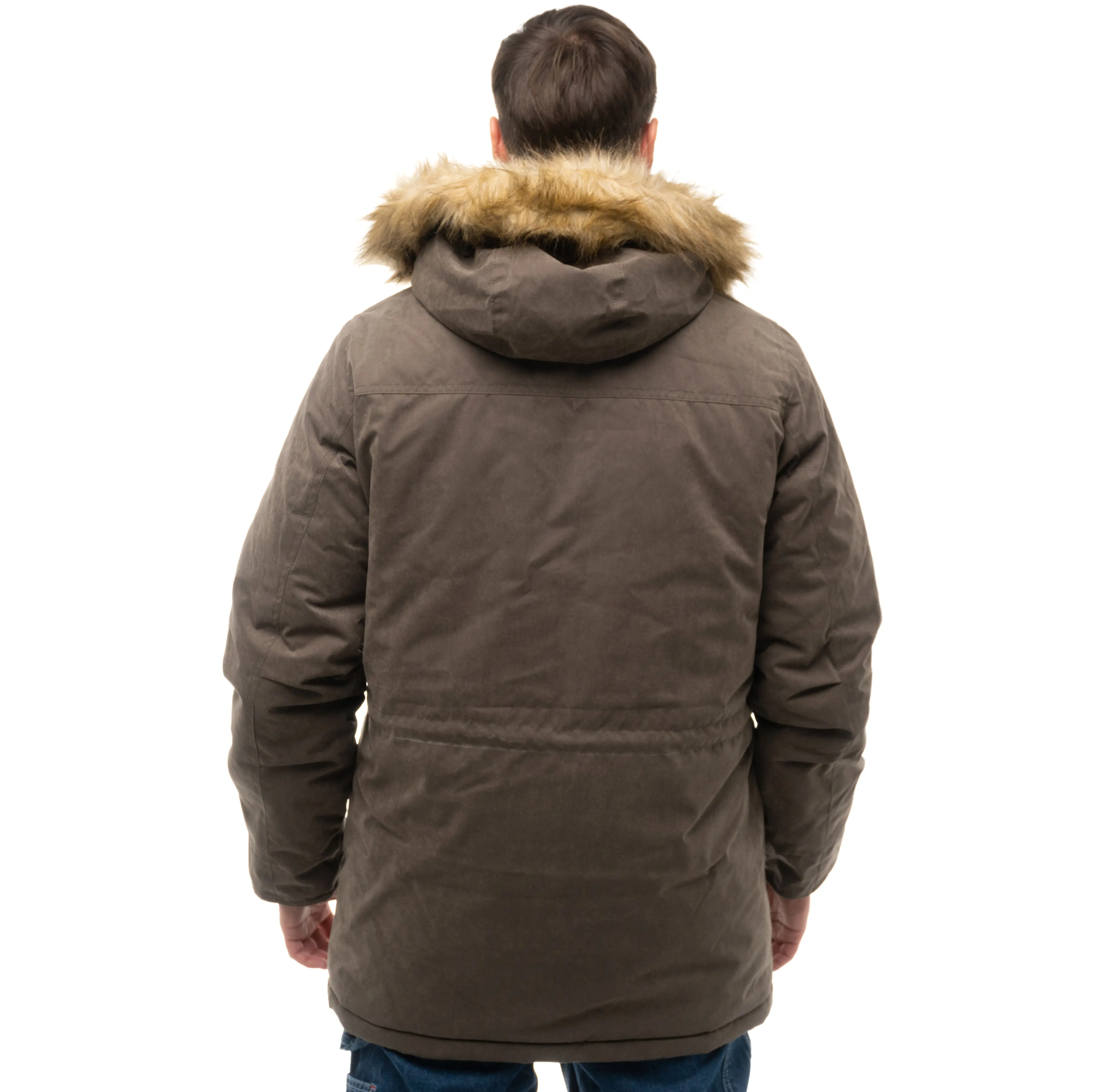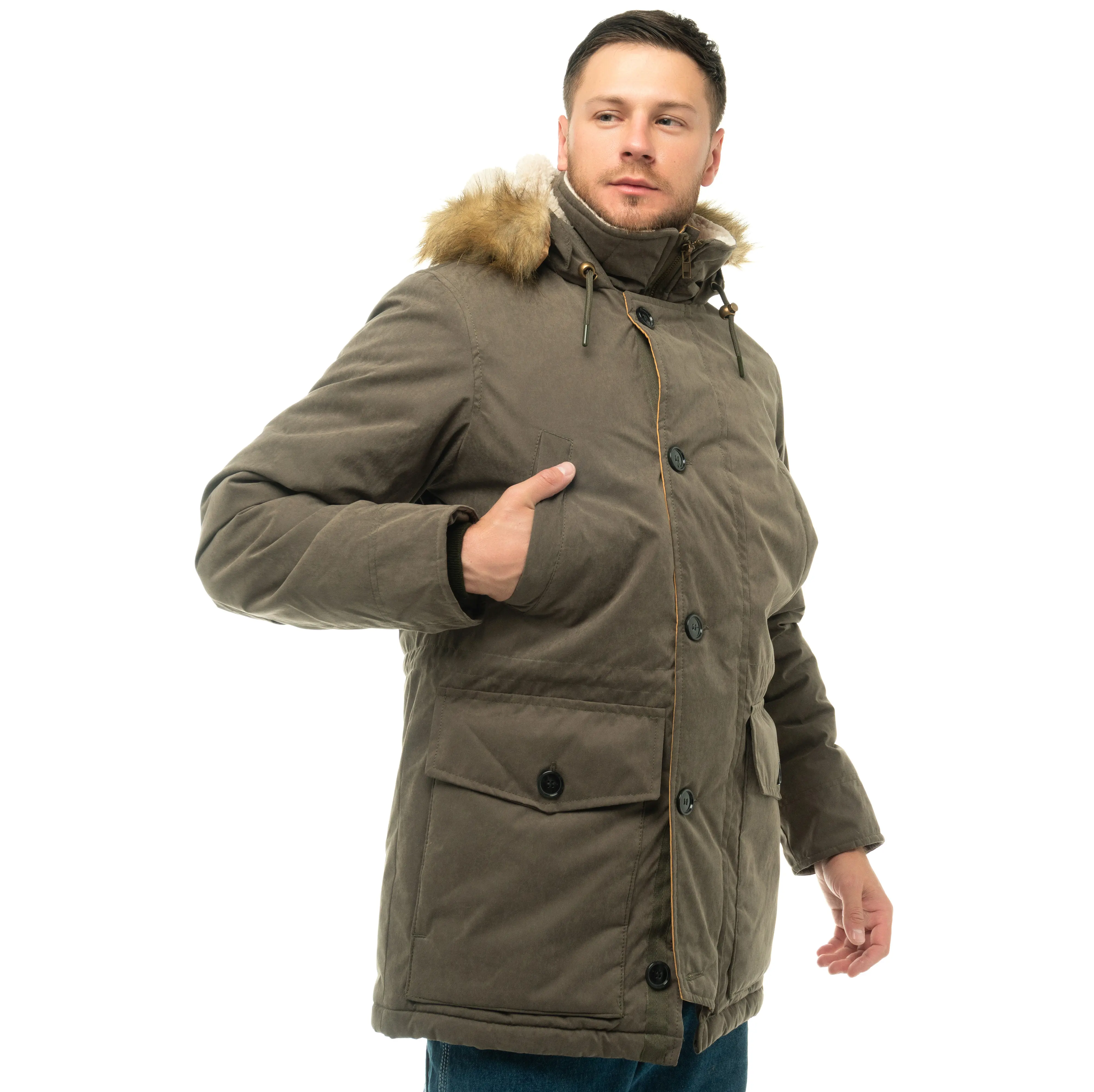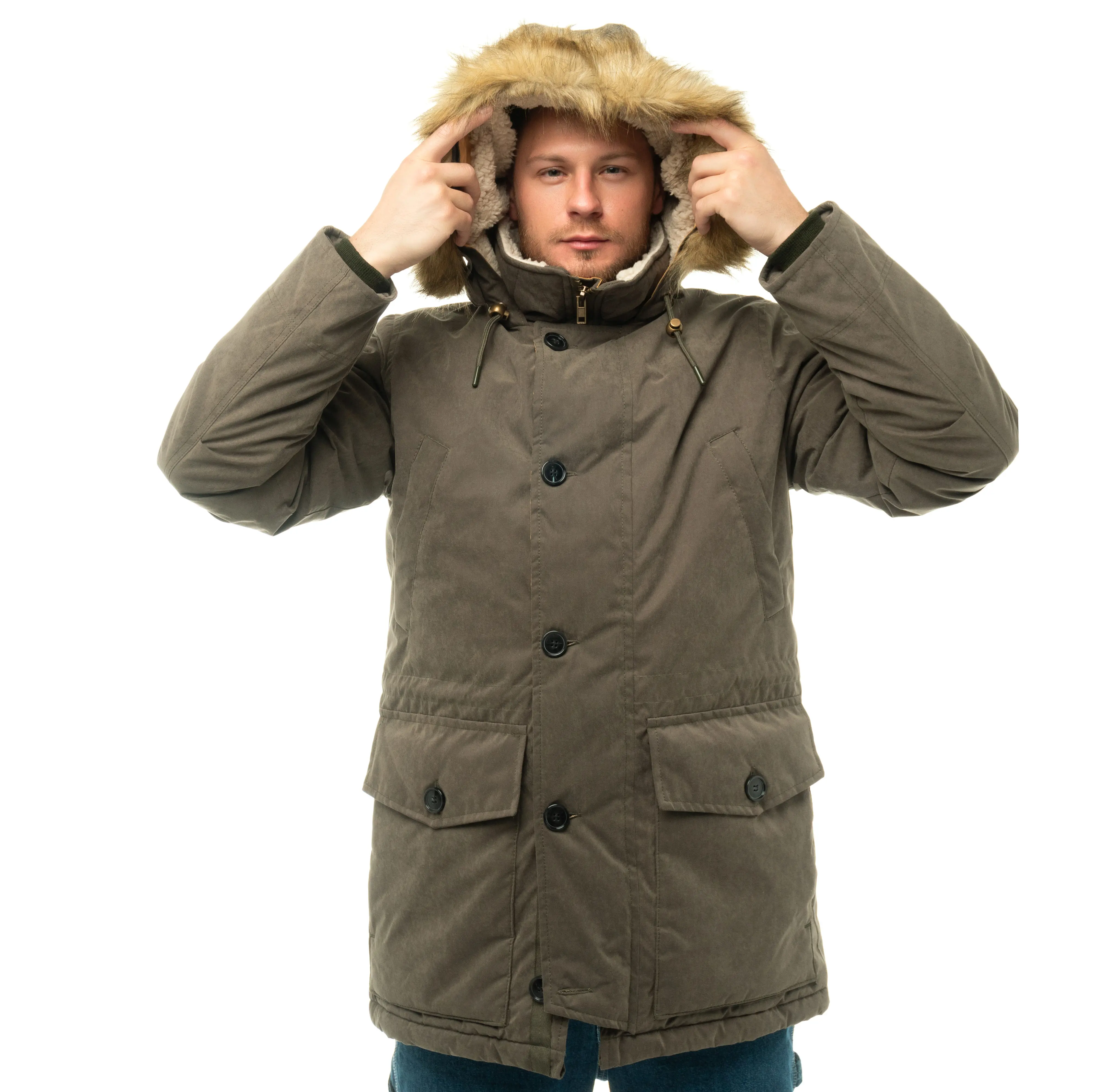 - Притачной капюшон с пристегивающийся меховой отделкой по лицевому вырезу, с регулировкой объёма по лицевой части