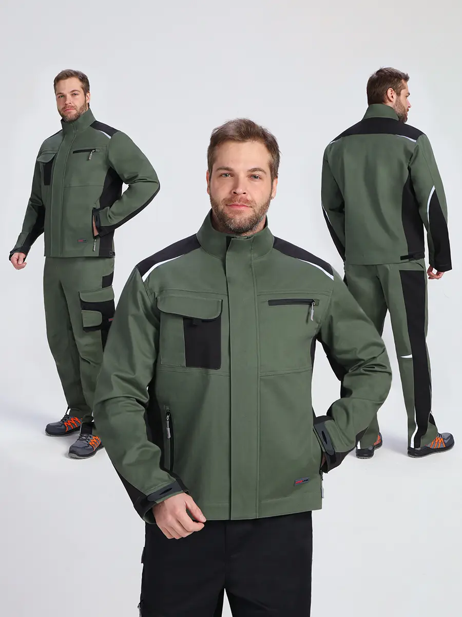 - Продуманная система карманов: 4 функциональных кармана, включая двухсекционный нагрудный с клапаном и петлей для бейджа, а также вертикальные прорезные с молнией для безопасного хранения