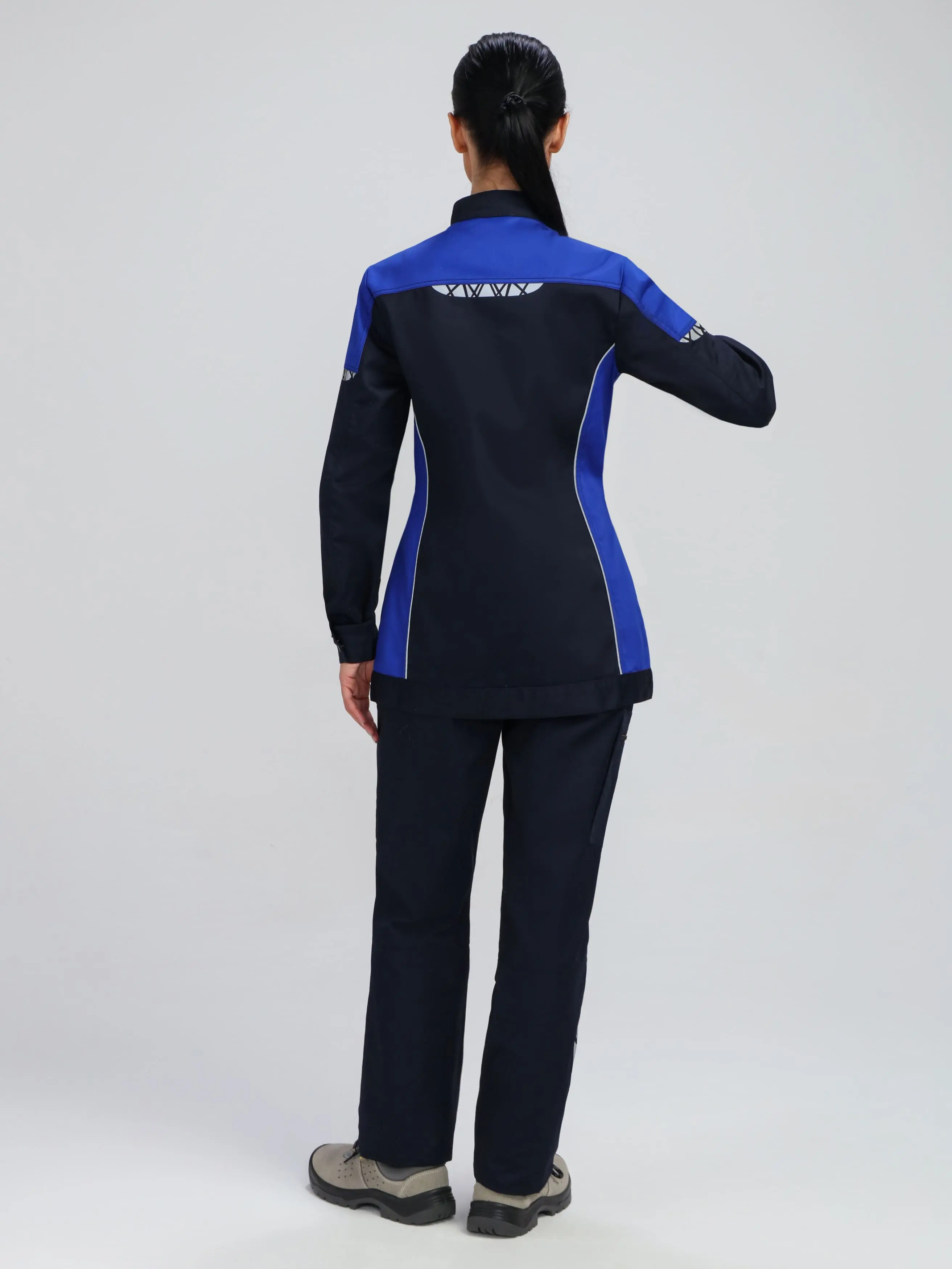 - Вставки из отделочной ткани на полочках и спинке, а также контрастный кант в рельефных швах для и выразительного дизайна