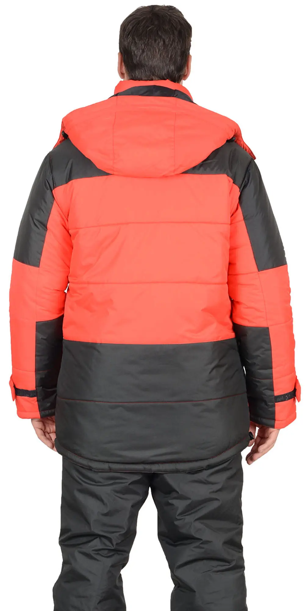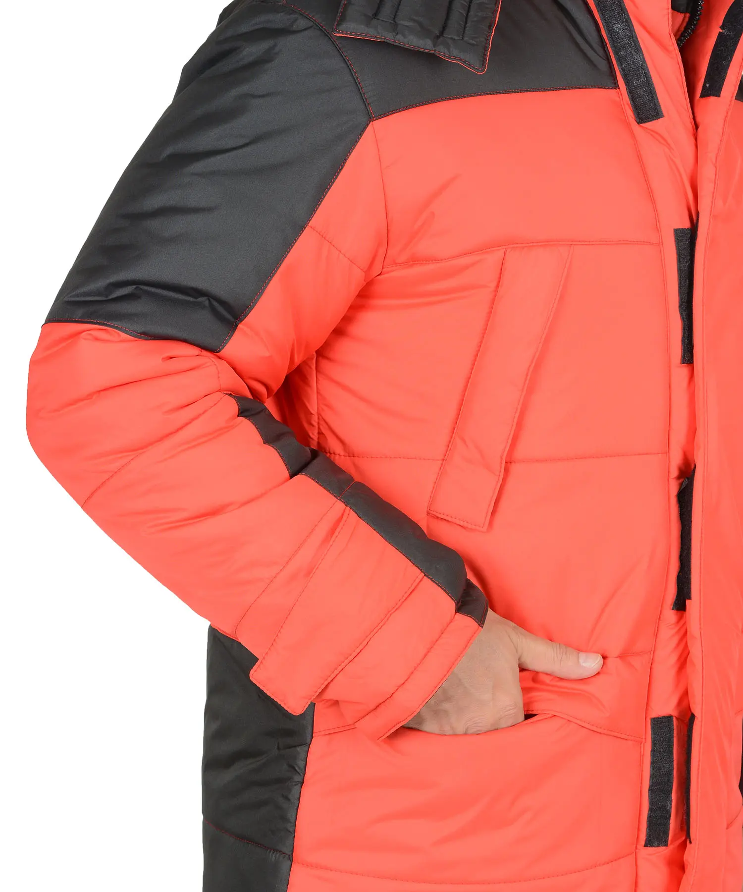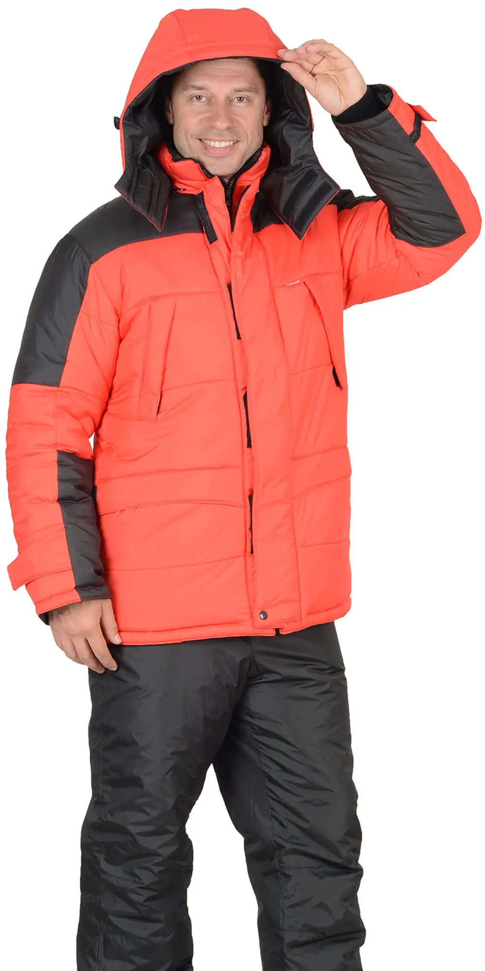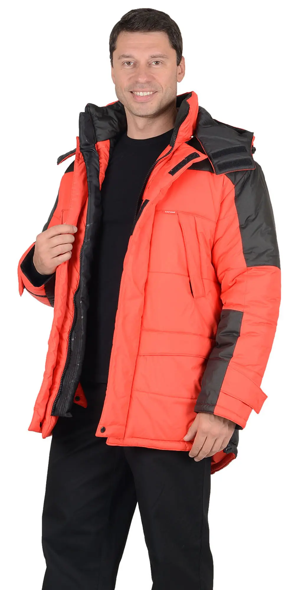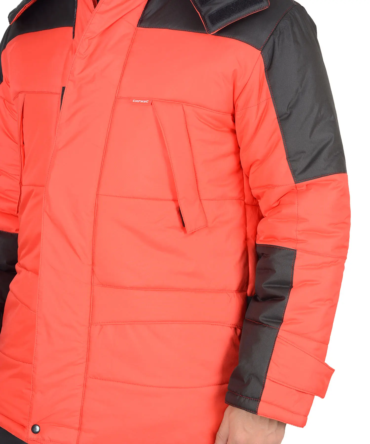 - с внутренним ветрозащитным клапаном правой полочки (от верхнего края воротника до низа куртки), из ткани подкладка.