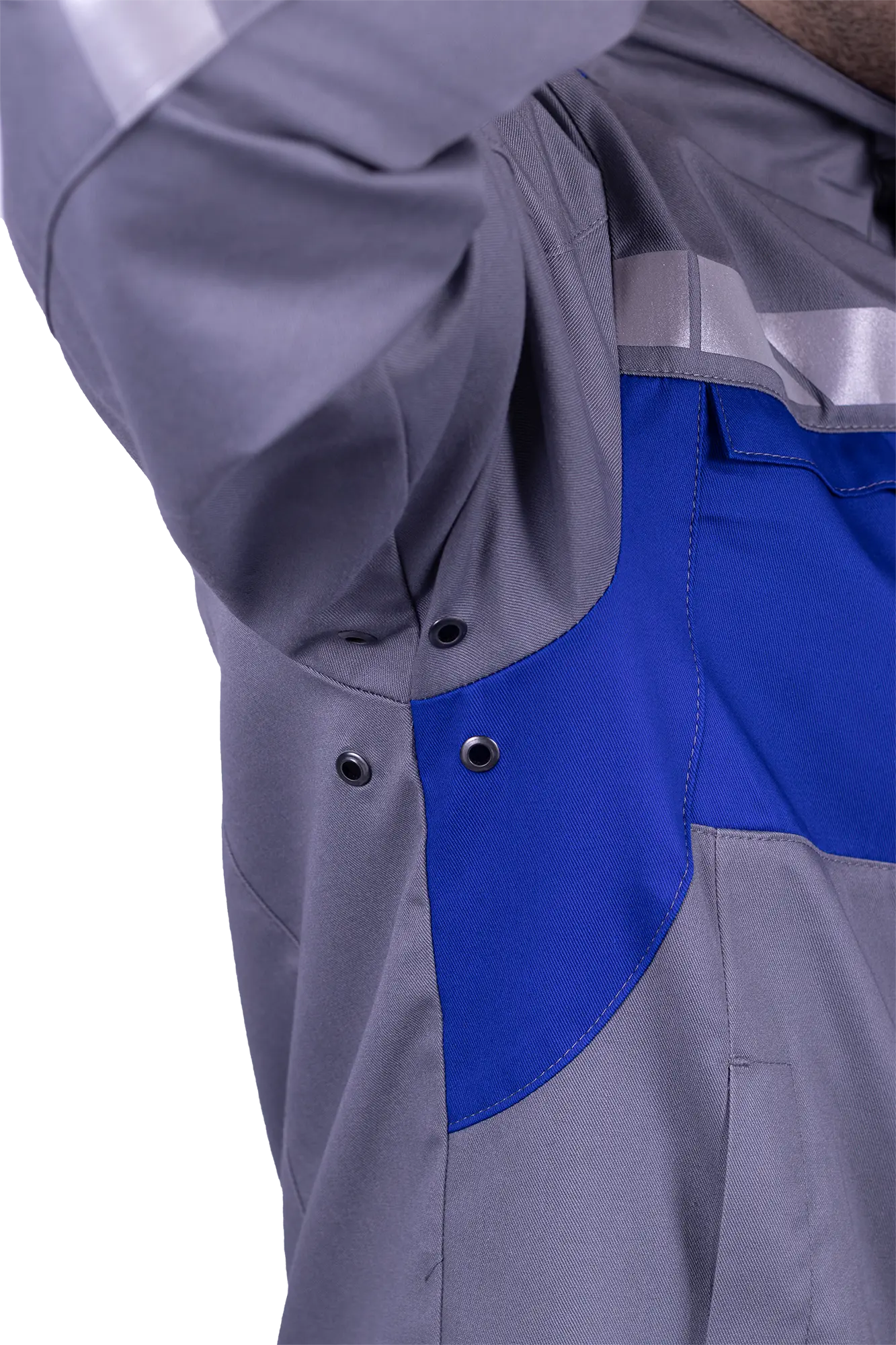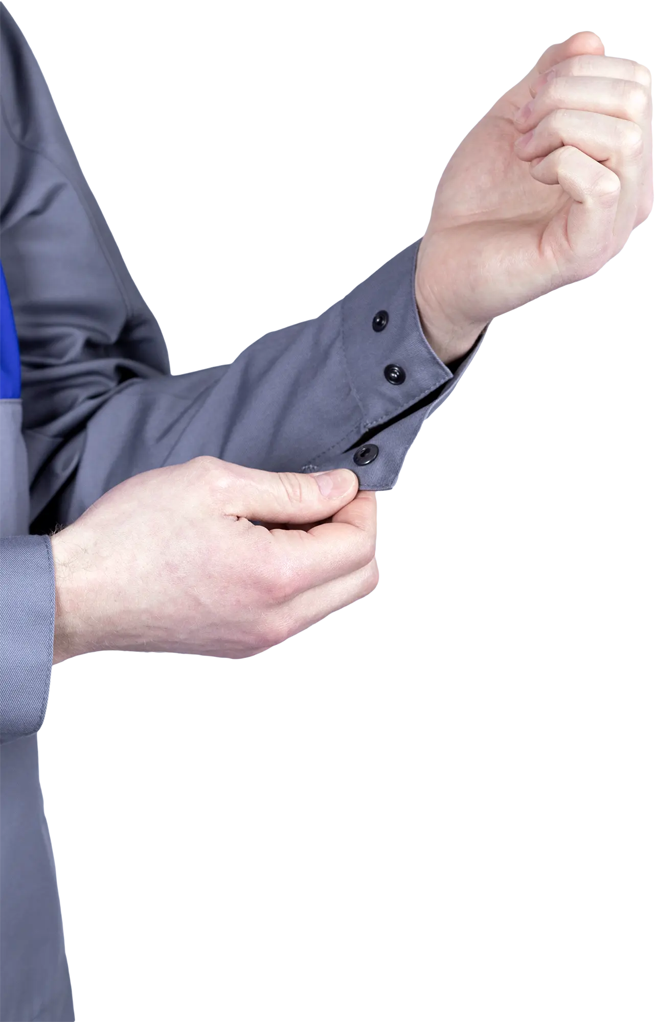 - рукава с локтевыми швами, с манжетами с застёжкой на кнопку с возможностью регулирования объема
