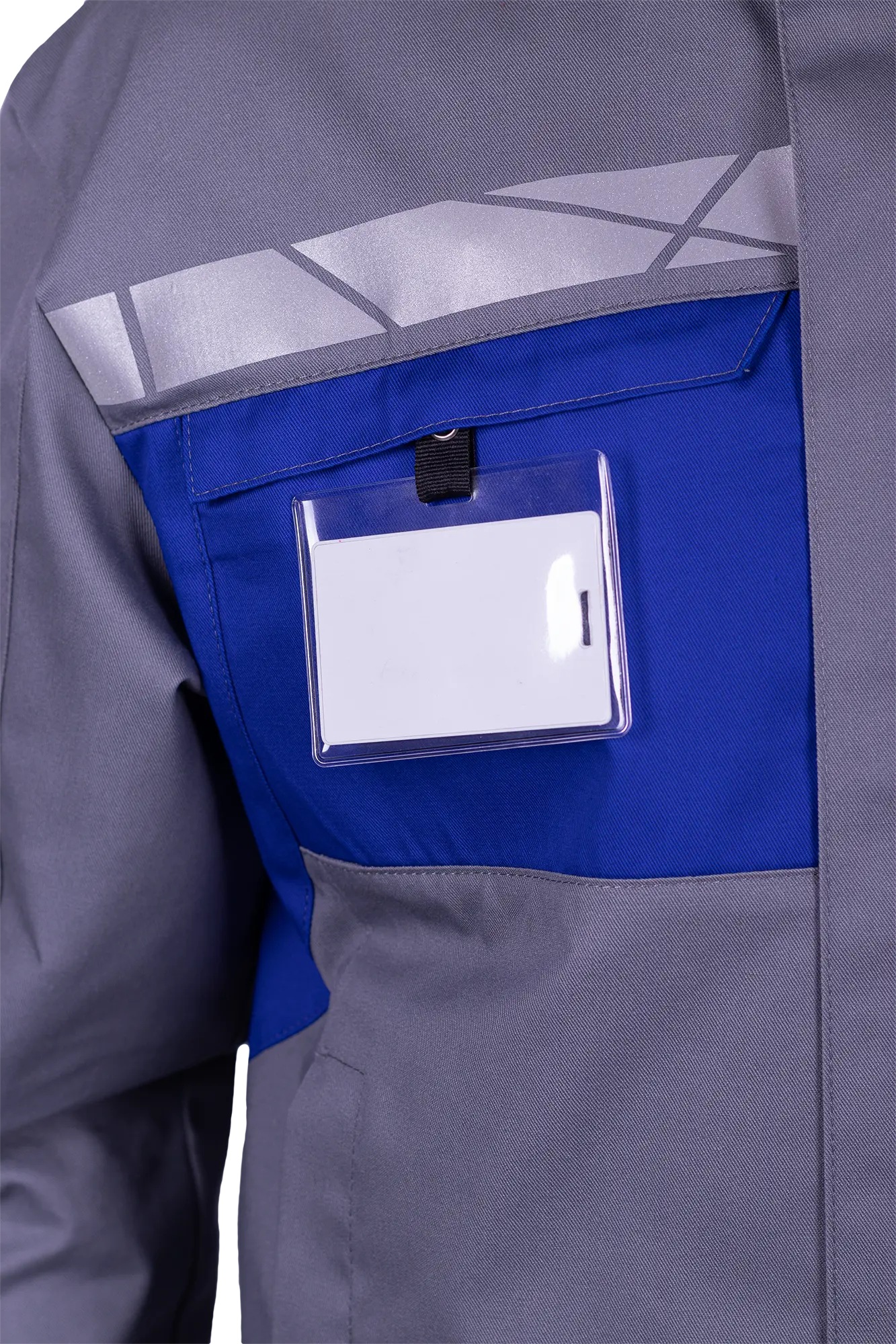 - правый нагрудный кармана в шве кокетки с горизонтальным входом, с тесьмой на кнопке для крепления пропуска