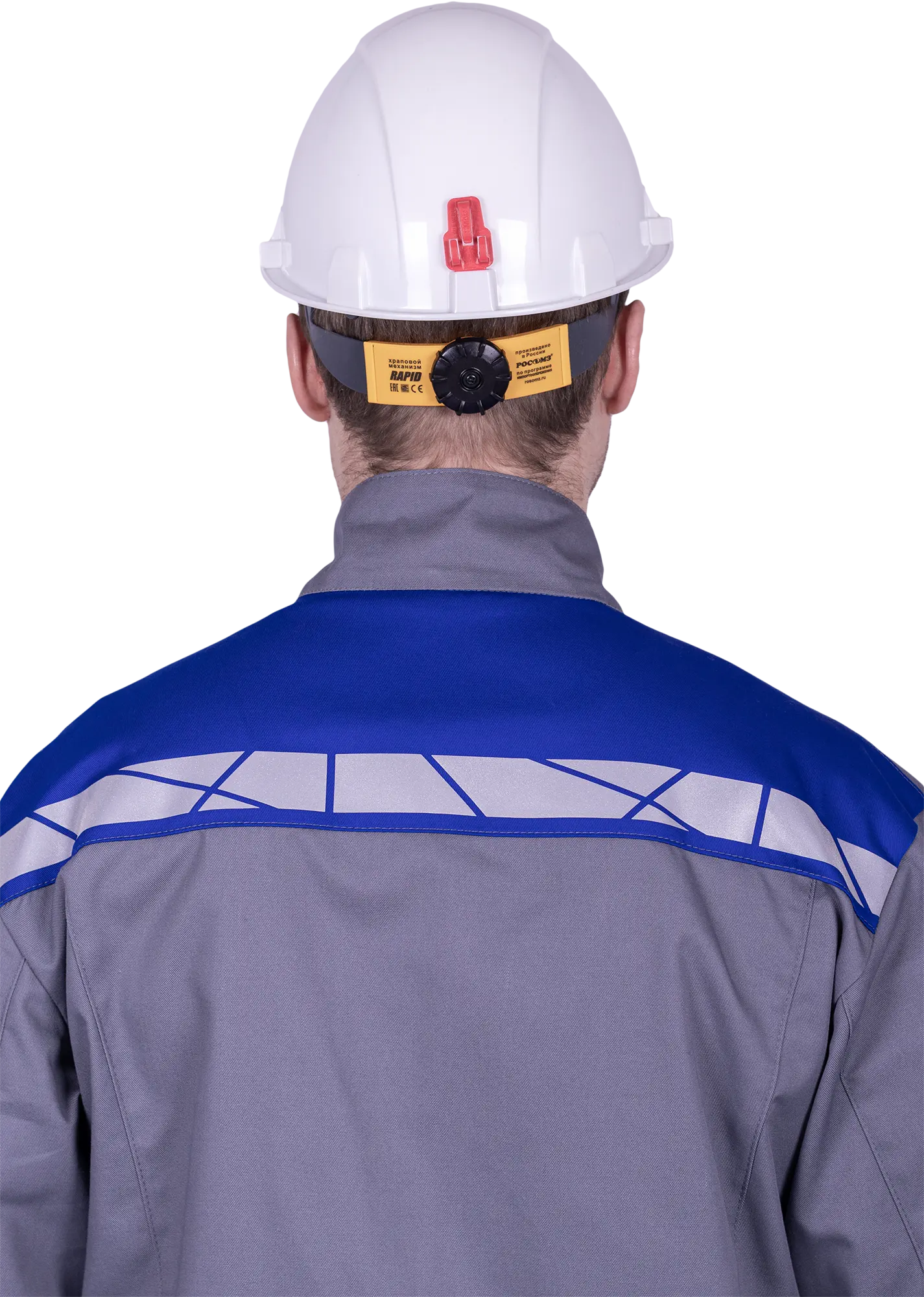 - термоклеевая световозвращающая полоса шириной 30 мм располагается по кокеткам полочек и спинки, низу центральной части рукавов