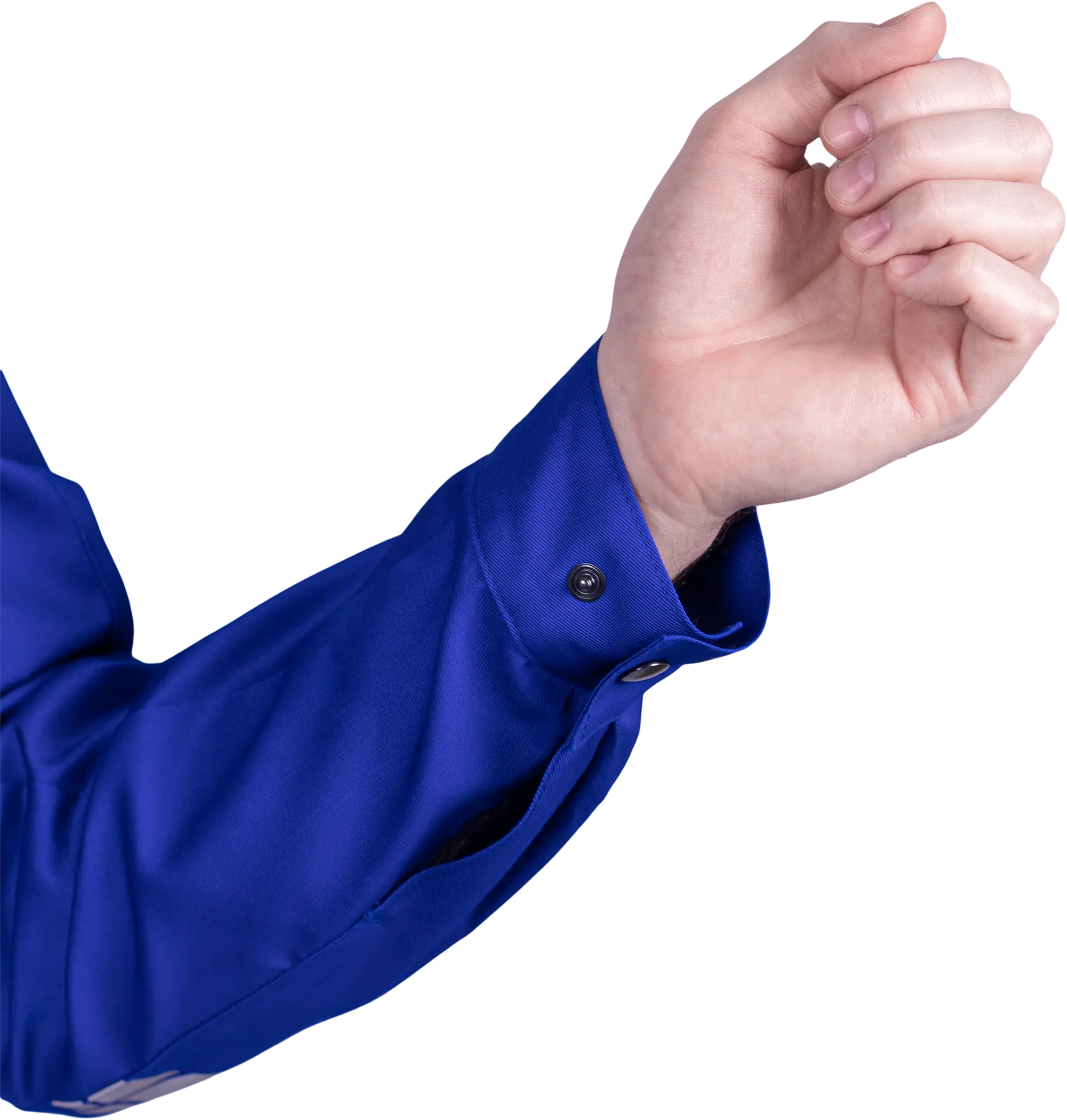 - рукава с локтевыми швами, с манжетами с застёжкой на кнопку с возможностью регулирования объема