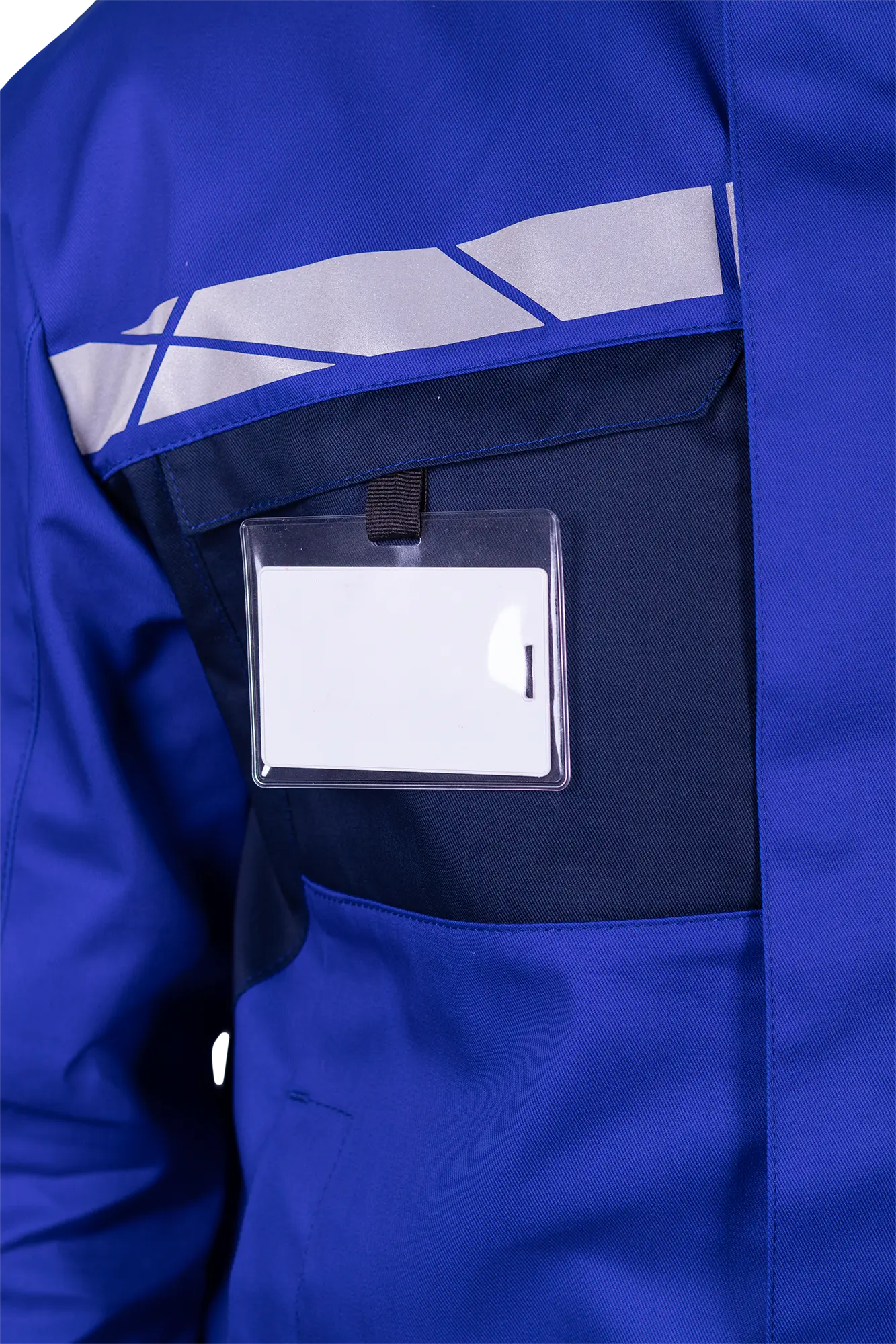 - правый нагрудный кармана в шве кокетки с горизонтальным входом, с тесьмой на кнопке для крепления пропуска