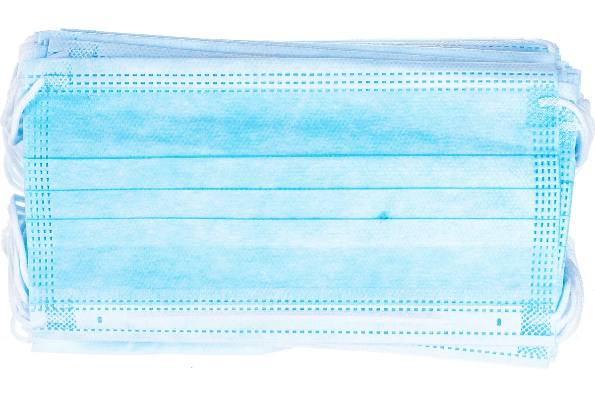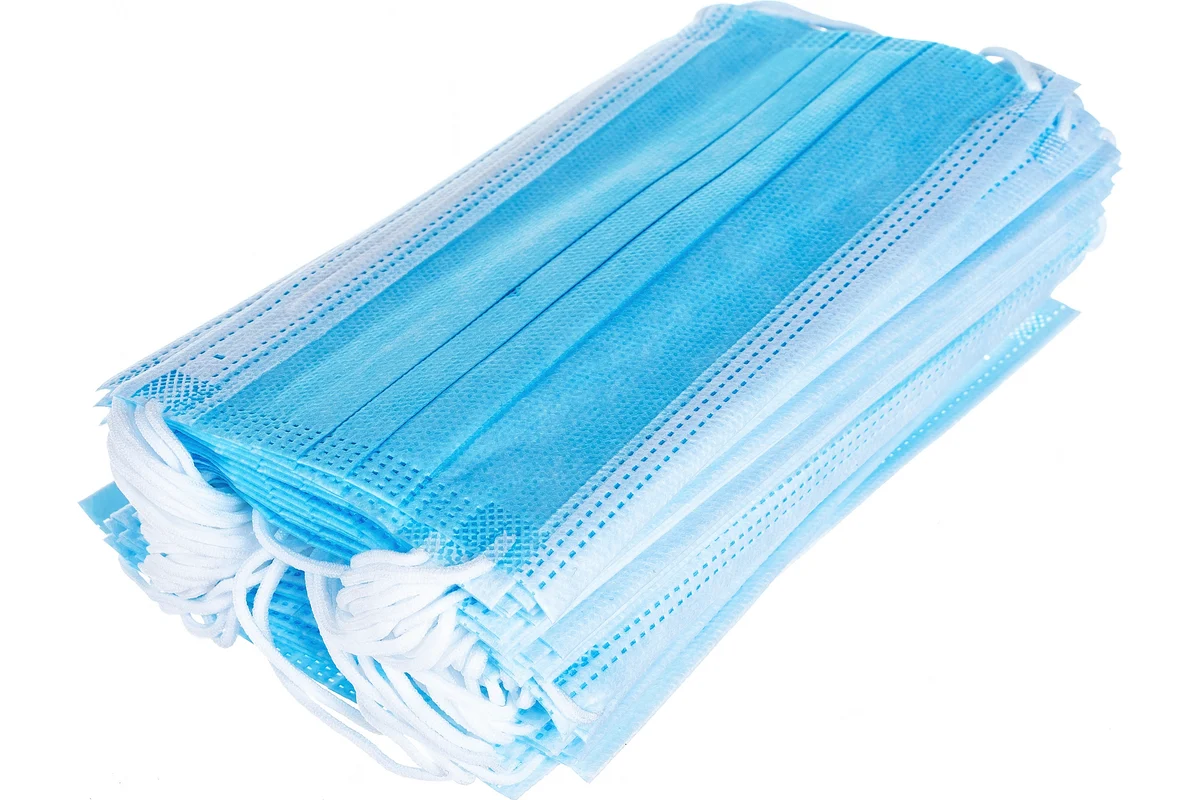 Защитная маска 3-х слойная 50 шт мельтблаун имеет гибкий встроенный носовой фиксатор.