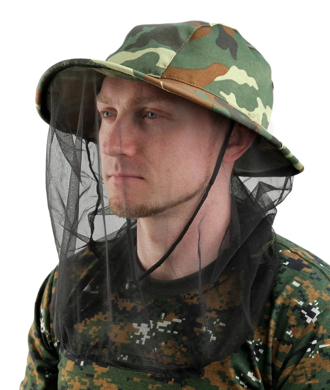 - Шляпа-накомарник надежно фиксируется резинкой в области подбородка.