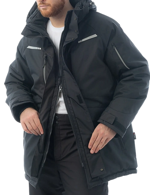Зимняя парка KW 215 – тёплая зимняя куртка удлинённого кроя с надёжным уровнем защиты от ветра и осадков. Куртка сшита из мембранной ткани. Она прочная и очень надёжная, устойчивая к зацепам, разрывам и порезам. Куртка из такой ткани не протрётся, не порвётся и прослужит долго.