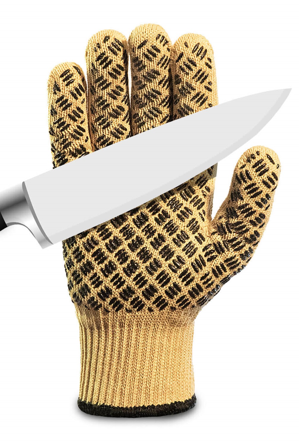 - Бесшовная перчатка выполнена из высокопрочной пара-арамидной нити (10 класс вязки) с двойным оверлоком.