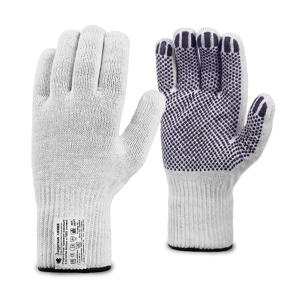 Трикотажные перчатки универсального применения 6-нитка белого цвета повышенной плотности вязки для более надежной защиты. Изготавливаются из х/б пряжи с добавлением прочных и легких синтетических волокон. Специальное точечное ПВХ-покрытие позволяет исключить проскальзывание предметов в руках при приложении физических усилий. Относятся к средствам индивидуальной защиты рук от механических воздействий (порезов, ссадин) и загрязнений. Полностью отвечают требованиям ГОСТ и маркируются, согласно законодательству РФ. К основным преимуществам можно отнести невысокую стоимость, практичность, хорошую воздухопроницаемость. Являются самым распространенным, популярным и востребованным видом перчаток в различных областях деятельности. Применяются при проведении любых видов работ, связанных с физическим трудом. Оптимальны для использования на производствах с невысоким уровнем загрязнений. Бесшовная «дышащая» основа из полиэфира с хлопком с плотностью вязки 10 петель на дюйм. Высокий уровень комфорта и постоянный отвод влаги. Превосходные сцепные свойства и дополнительная стойкость к истиранию. Двойной оверлок - с возможностью пришить маркировку.