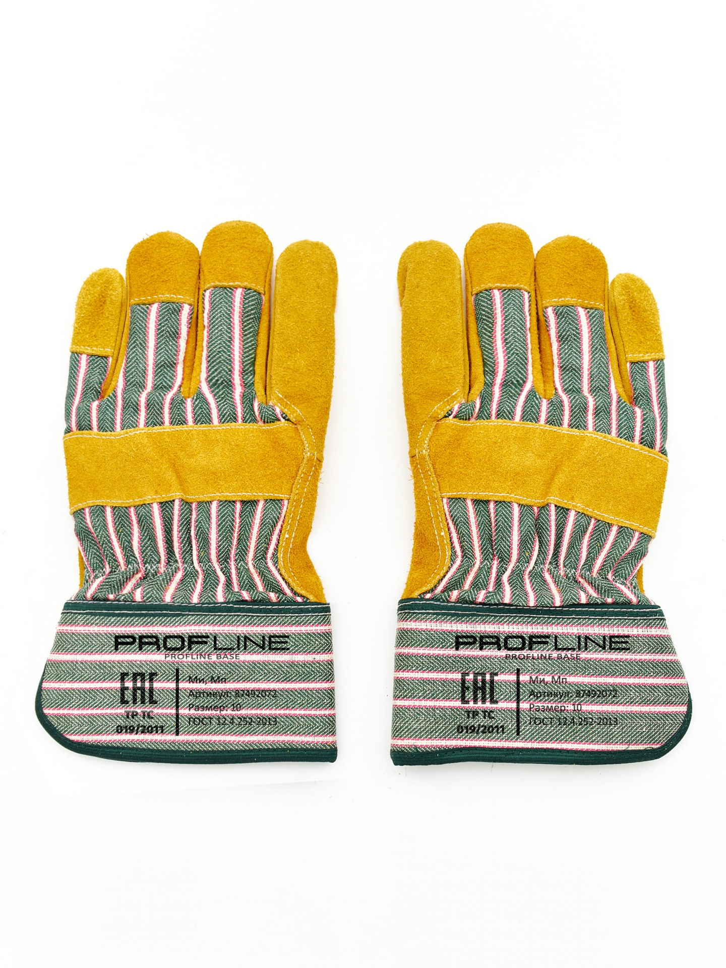 Перчатки спилковые для защиты от механических воздействий, комбинированные, х/б ткань со спилком, крага - х/б.