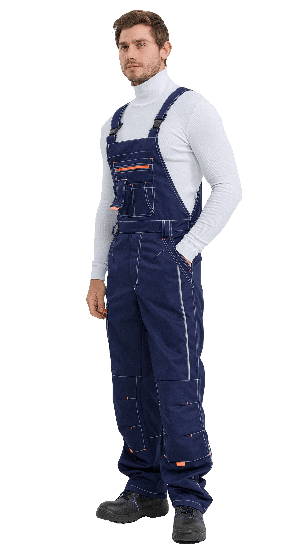 - Дополнительно световозвращающие элементы и контрастная оранжевая отделка на темно-синем фоне придают изделию яркость и стиль, создавая эффектный и профессиональный внешний вид.