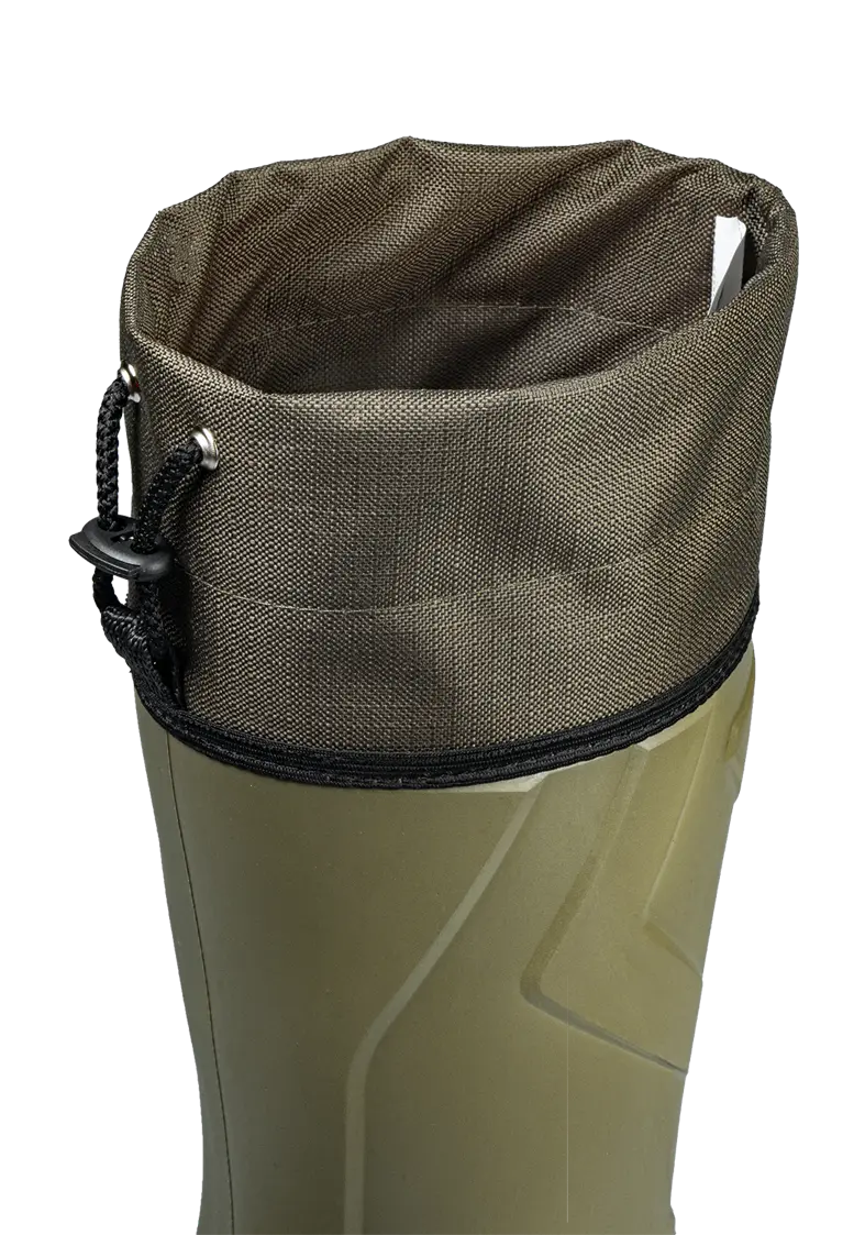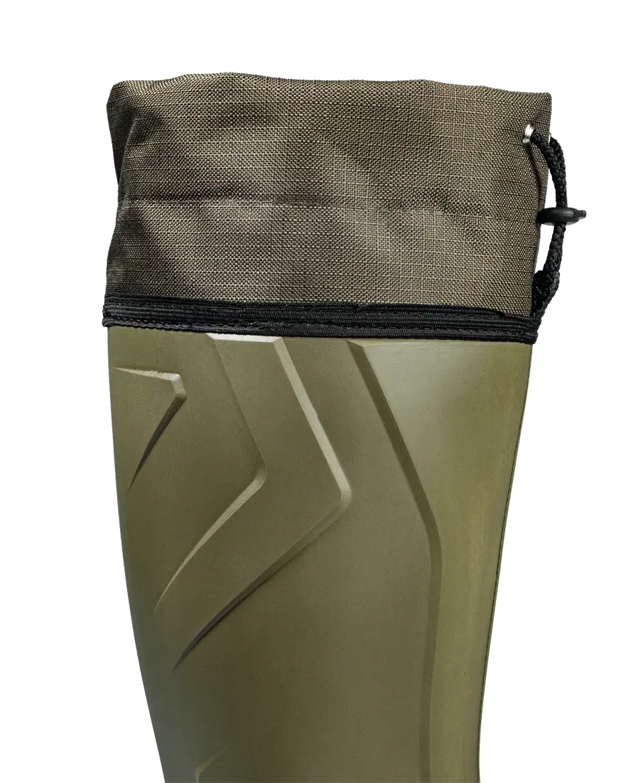 - Манжета с утяжкой из влагонепроницаемой ткани «Оксфорд» позволяет утянуть сапог по ноге, предотвращает от попадания любой влаги во внутрь и обеспечивает дополнительную защиту.