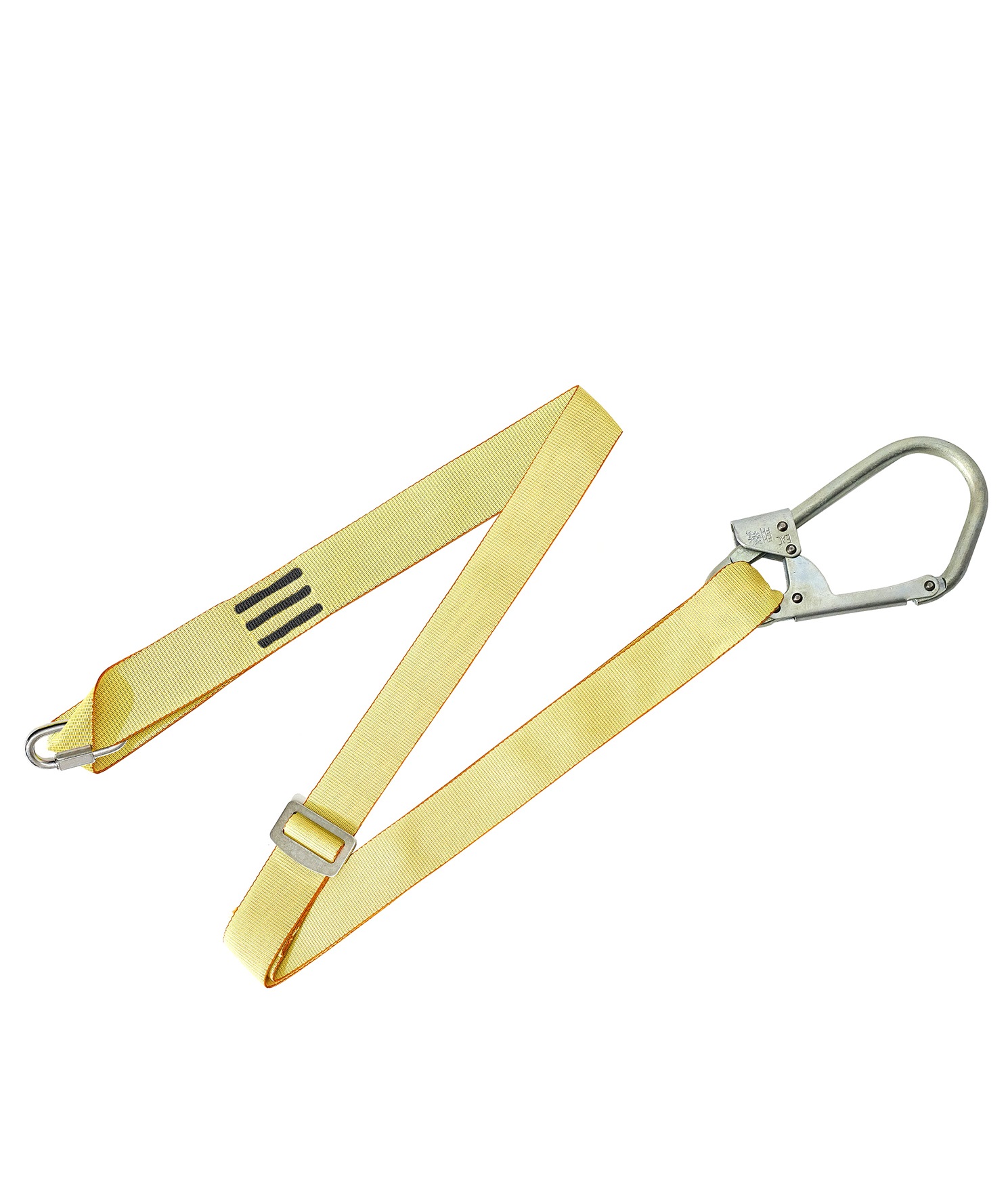 - Представляет собой фал из арамидной ленты с большим монтажным карабином класса А и соединительным винтовым карабином класса Q.