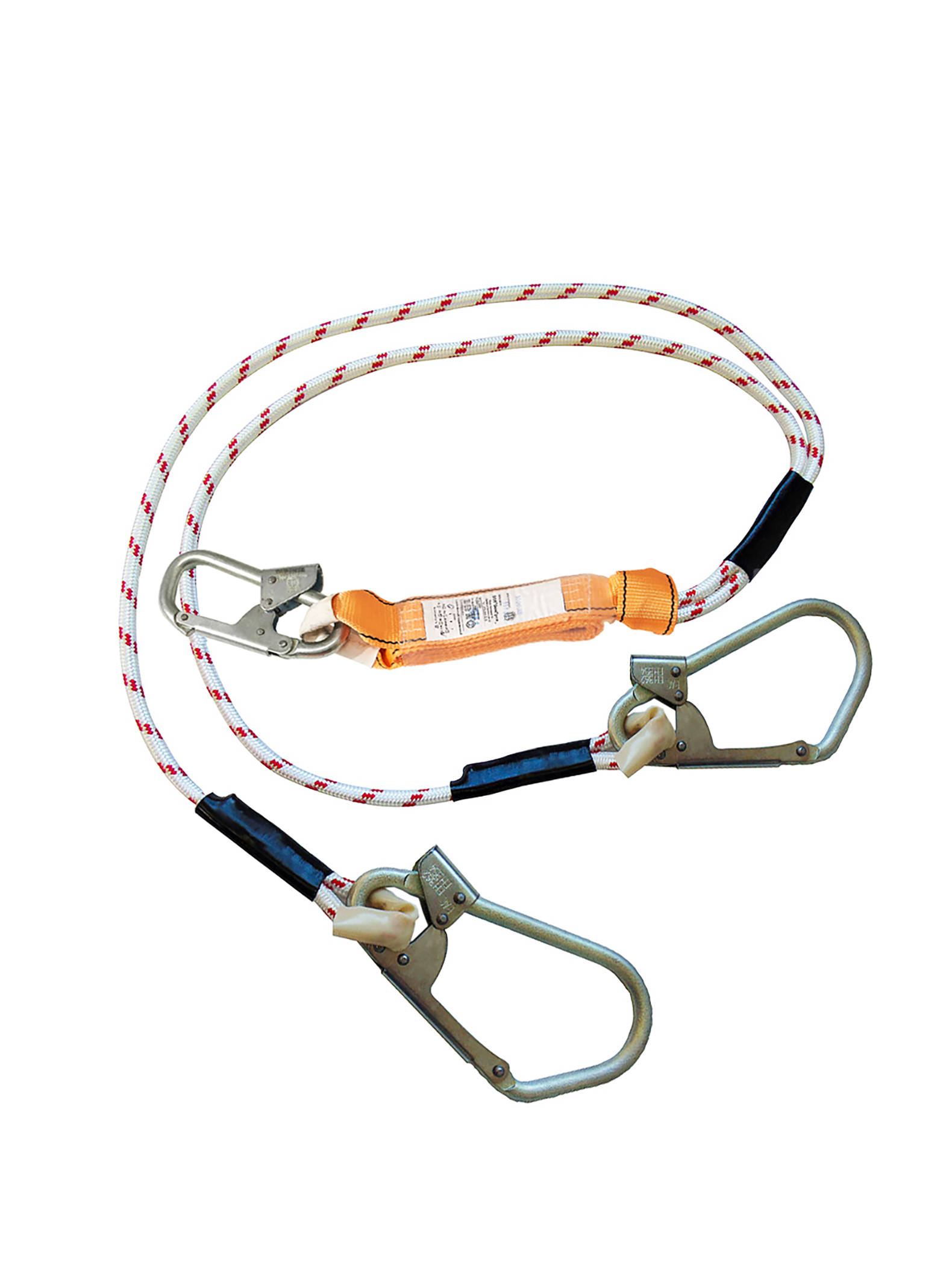 Строп для удержания и страховки при выполнении высотных работ. Представляет собой двуплечий фал из 24-х прядной полиамидной верёвки с амортизатором рывка, 2-мя большими монтажными карабинами класса А и малым монтажным карабином класса Т.