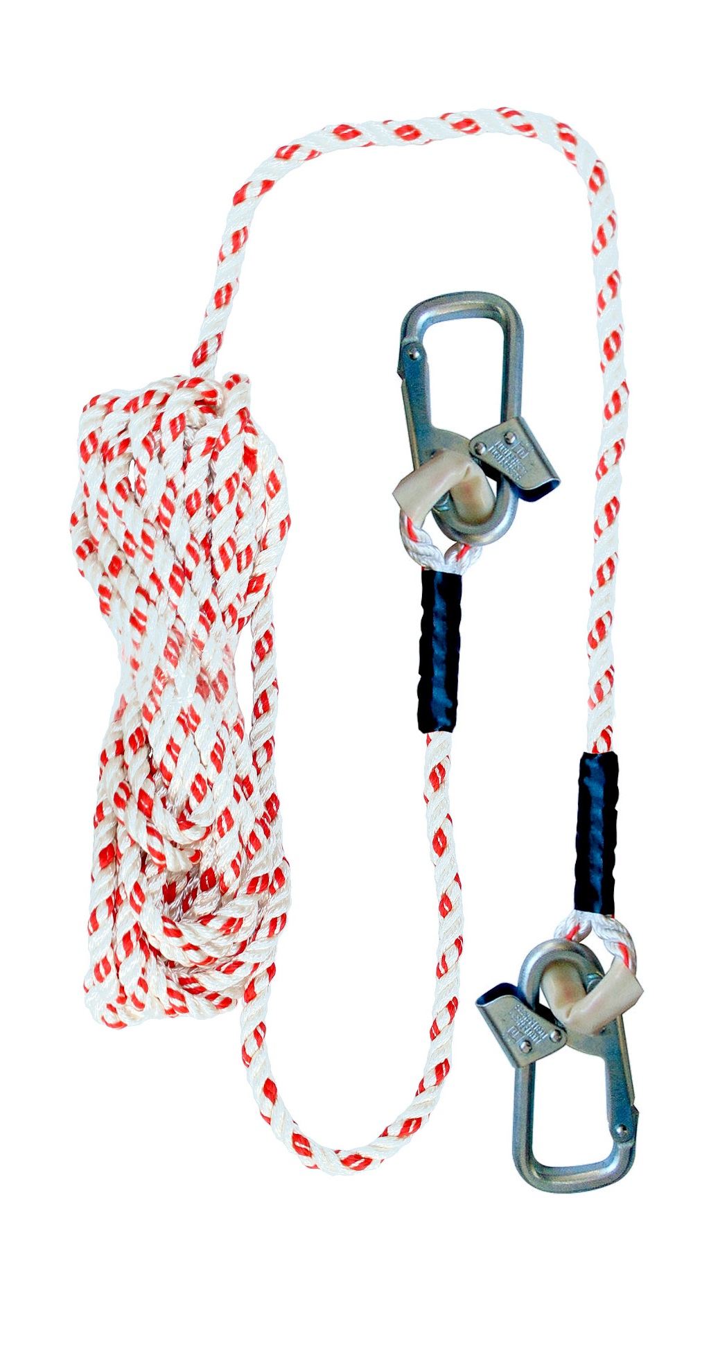 - Представляет собой фал из 3-х прядного полиамидного каната с 2-мя малыми монтажными карабинами класса Т.