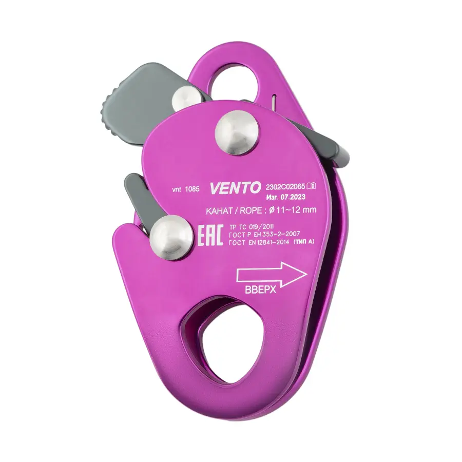 Специальный переключатель позволяет зажиму свободно скользить по веревке либо в обоих направлениях, либо только вверх.