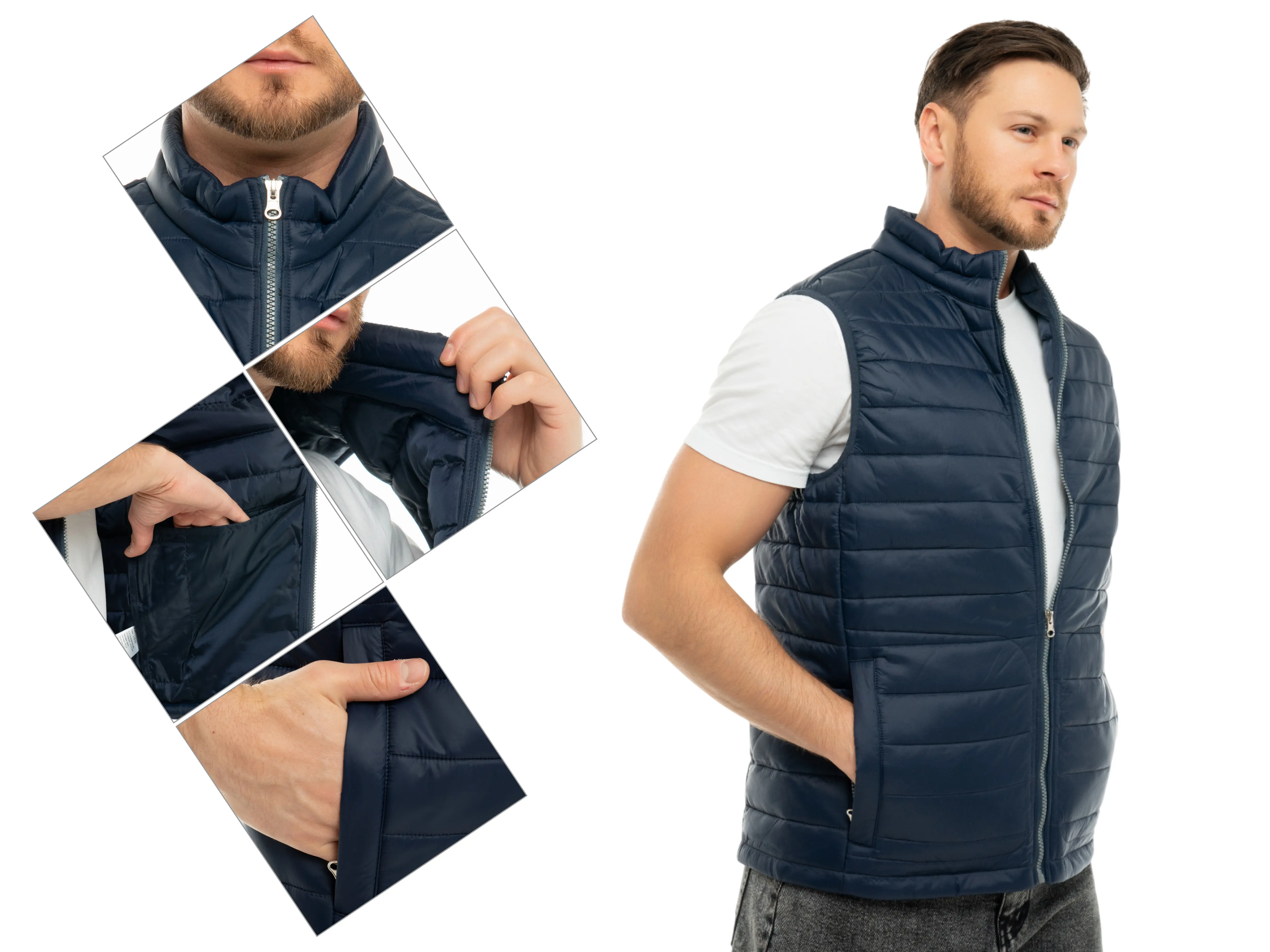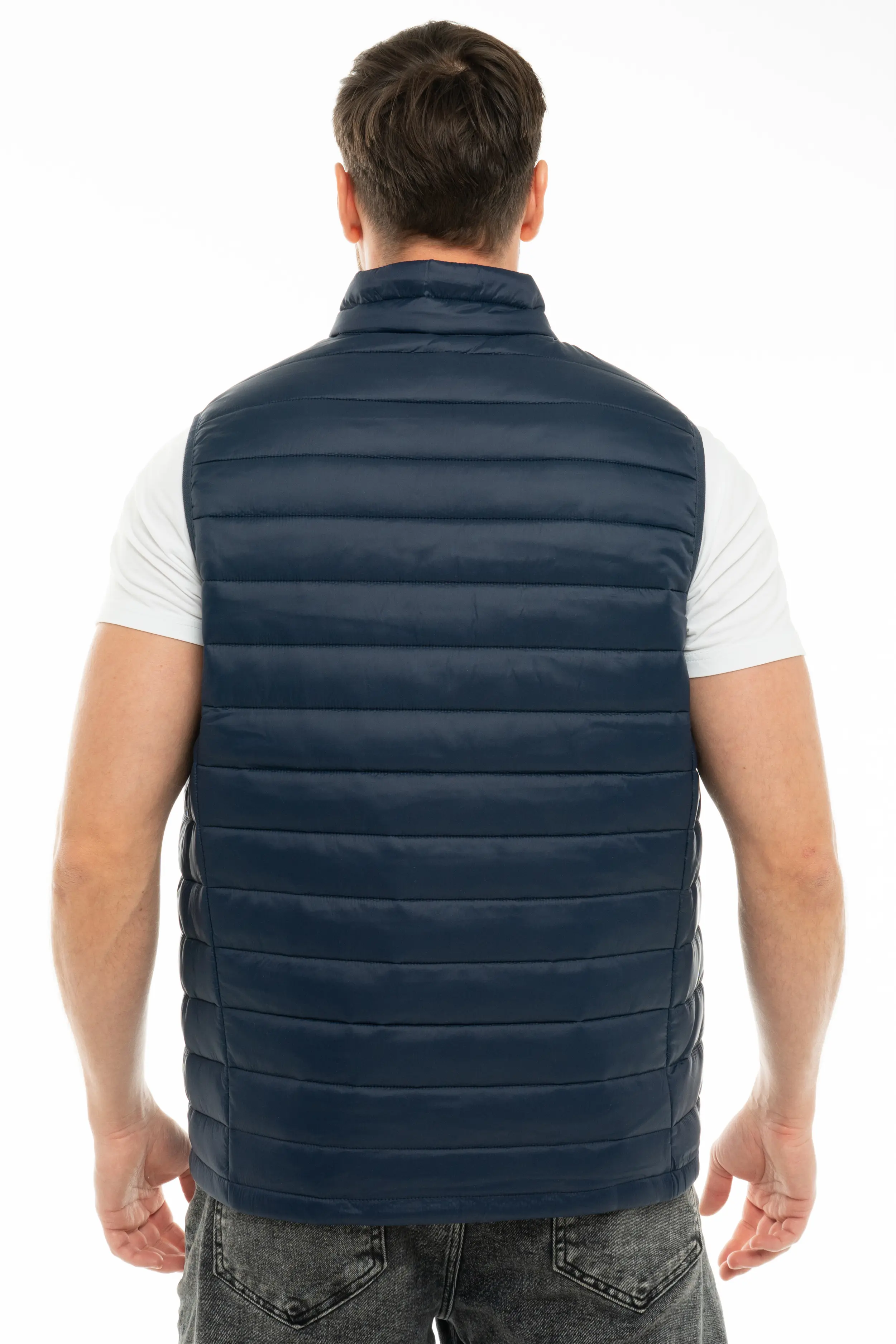 - Утепленный стеганый жилет прямого кроя подходит как мужчинам, так и женщинам.