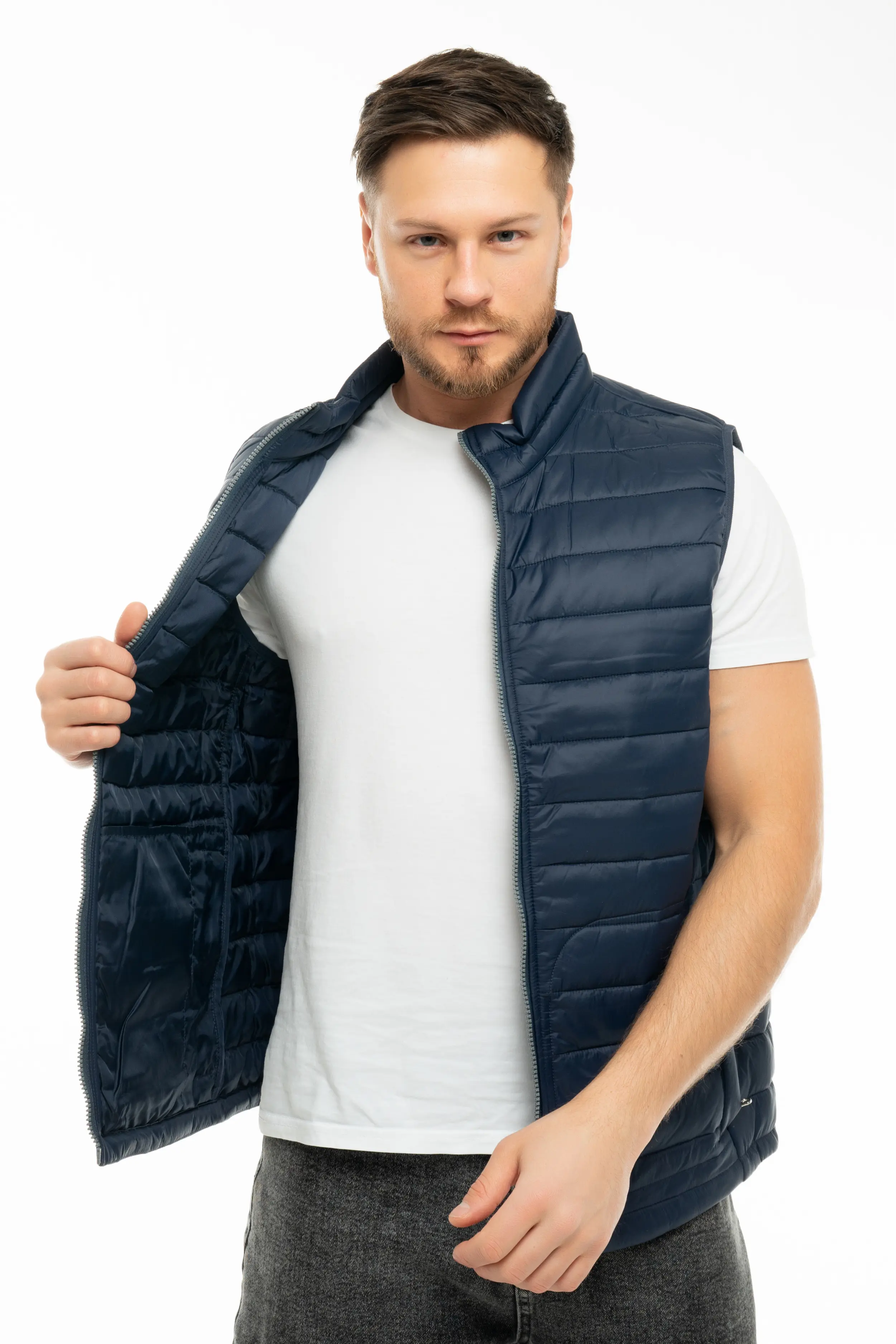 Жилет утепленный арт. J-01. выполнен в классическом фасоне из высококачественных материалов.