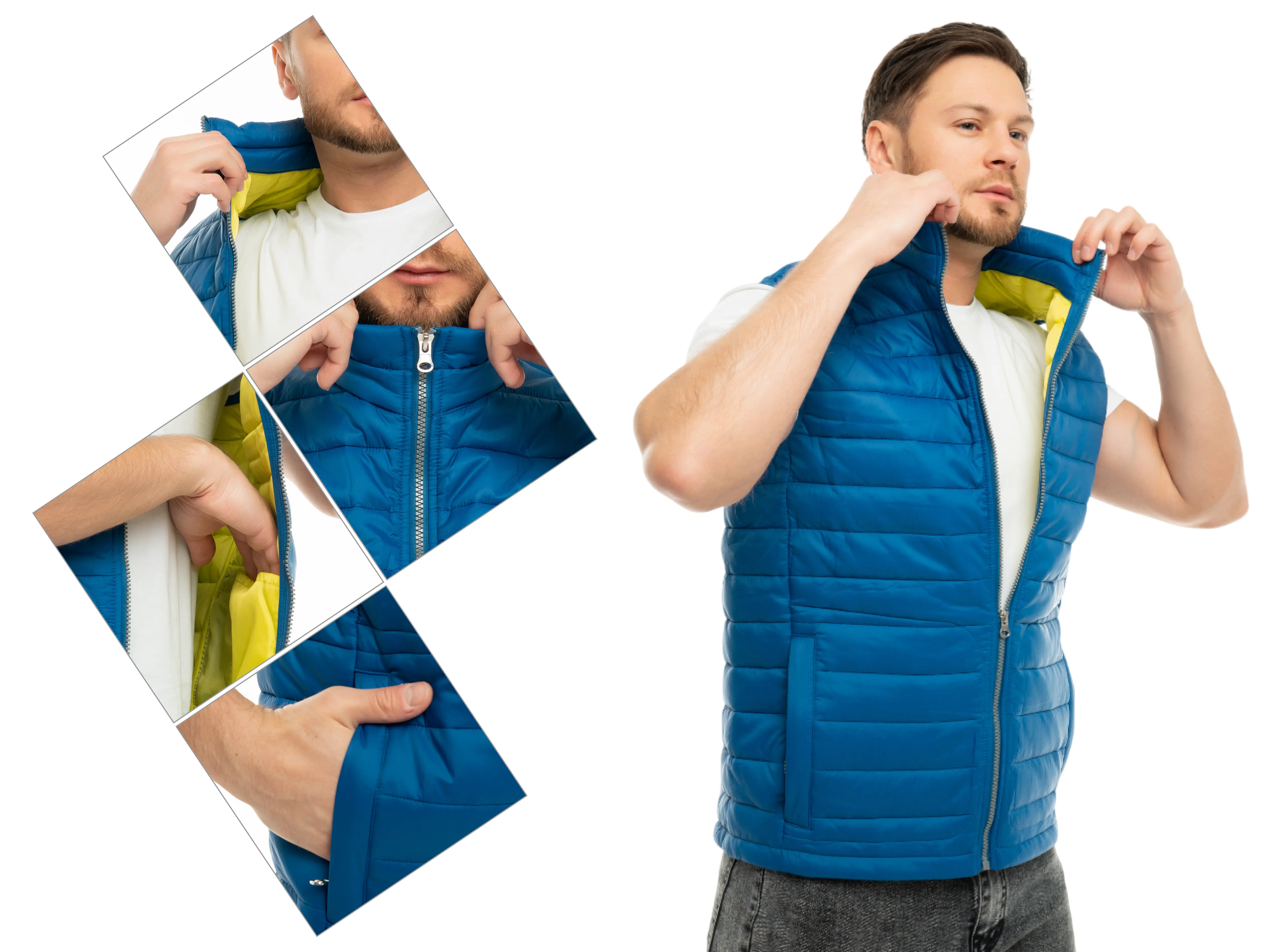 - Утепленный стеганый жилет прямого кроя подходит как мужчинам, так и женщинам.