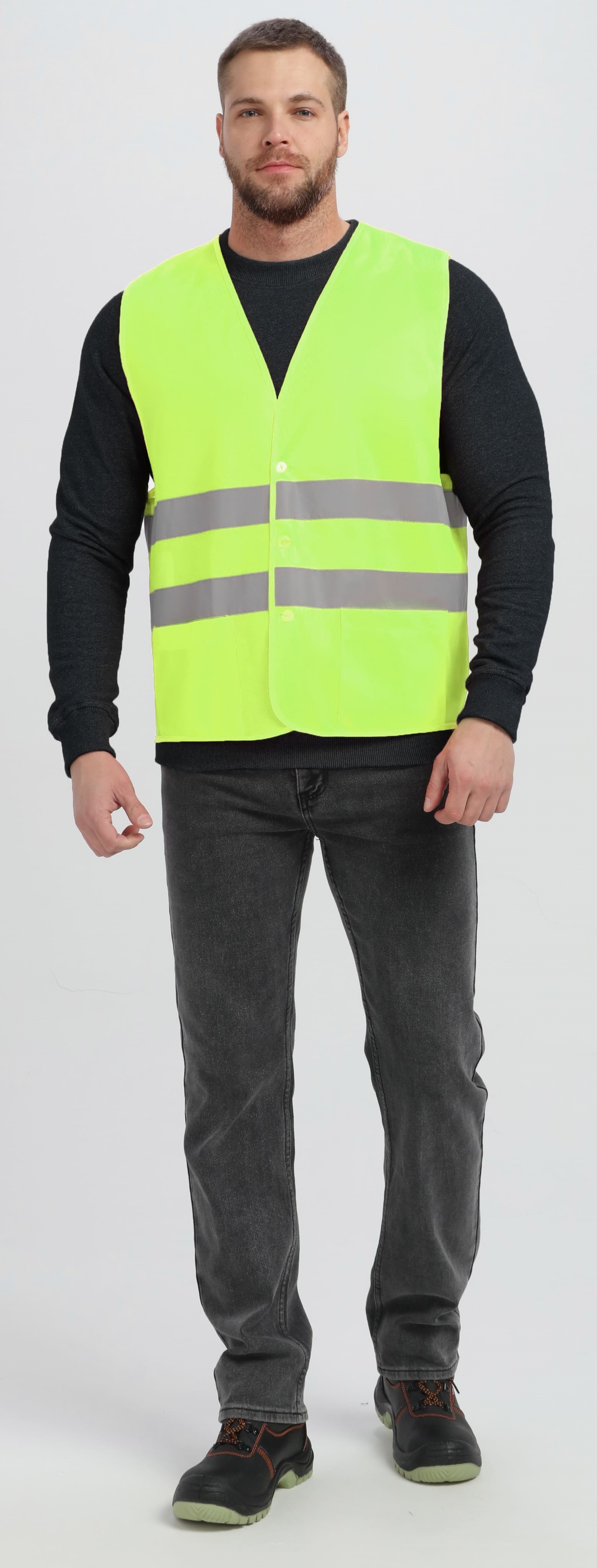 - Две горизонтальные светоотражающие полосы (СОП) шириной 50 мм обеспечивают повышенную видимость в темное время суток и в условиях плохой освещенности.