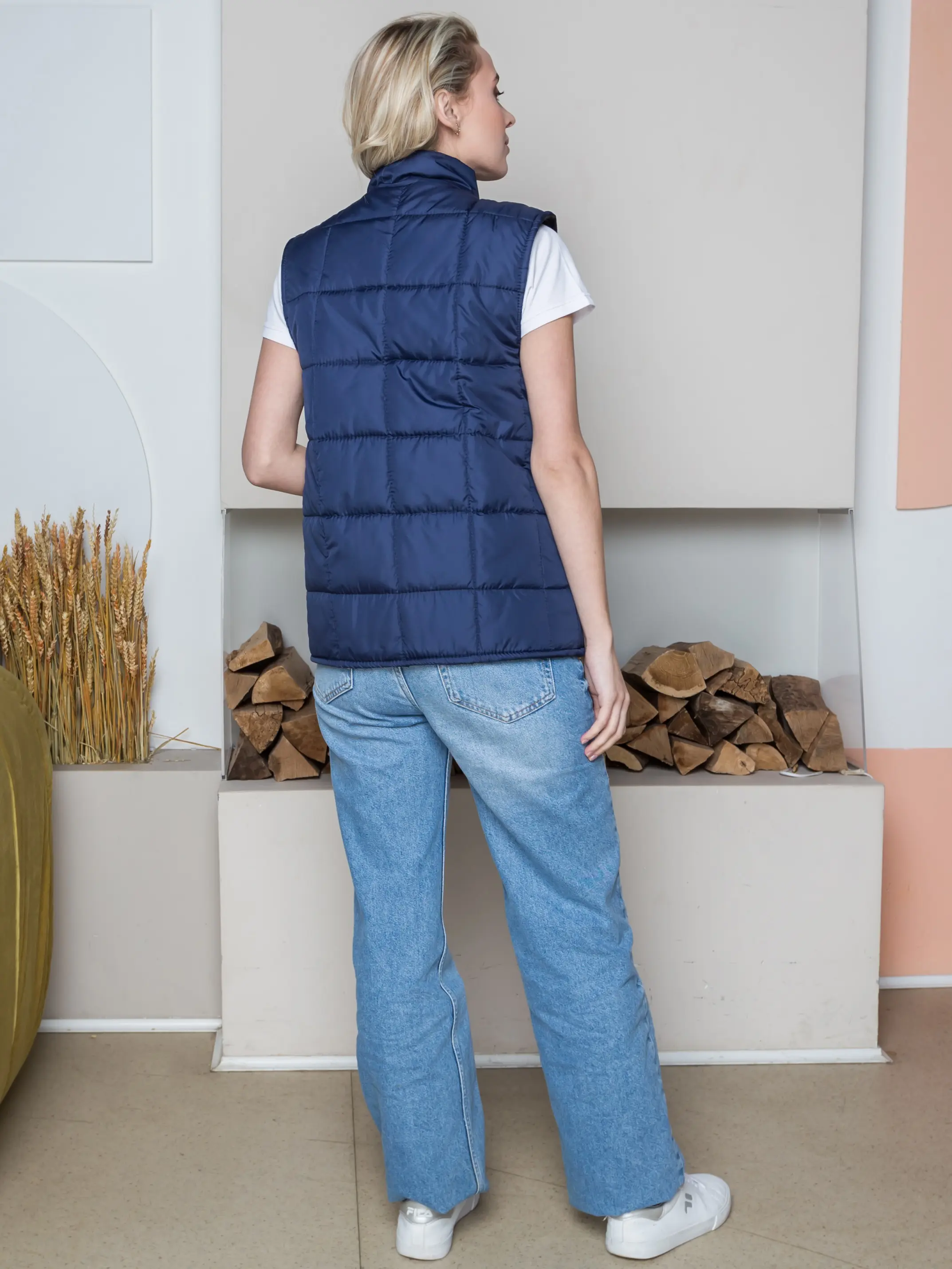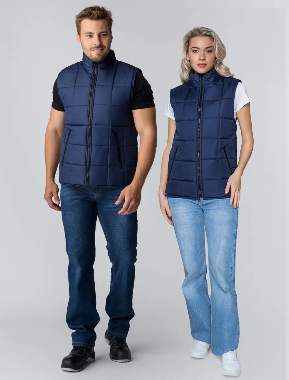 - Стеганый жилет прямого кроя подходит как мужчинам, так и женщинам, прекрасно садится по фигуре, выступая отличным дополнением повседневных и рабочих образов.