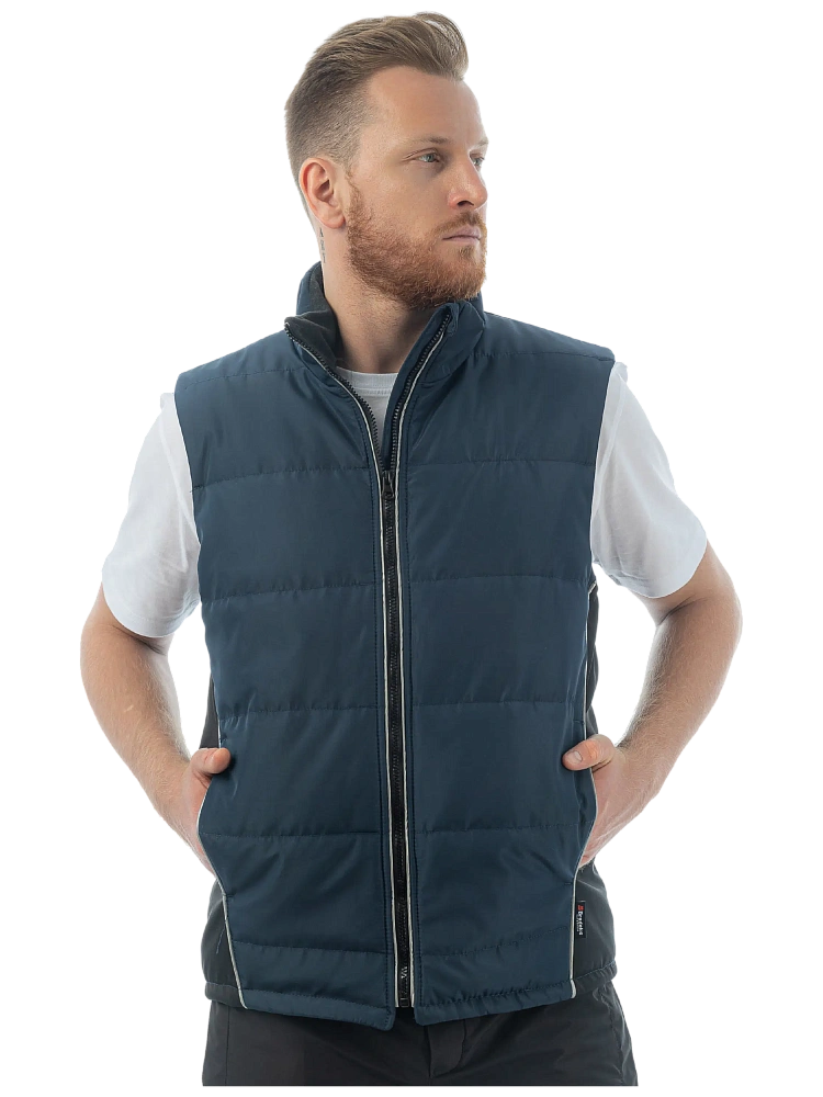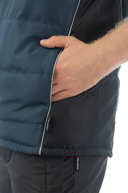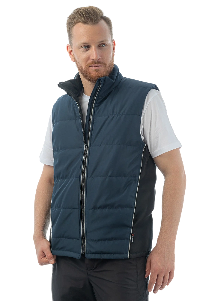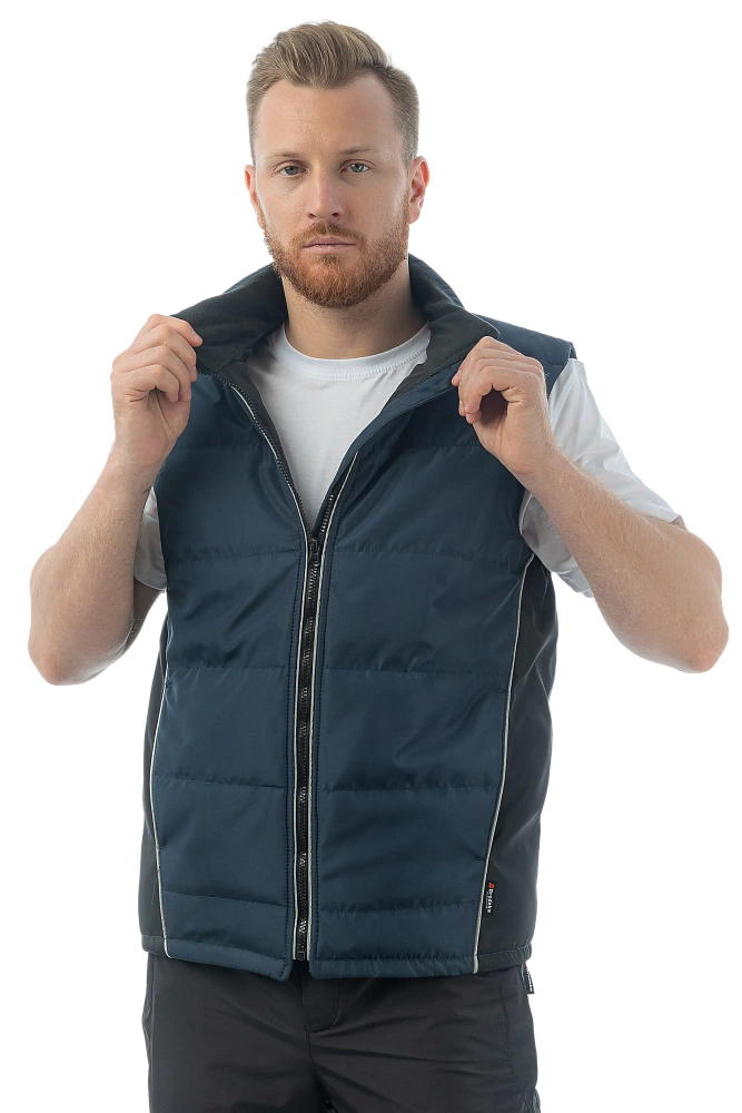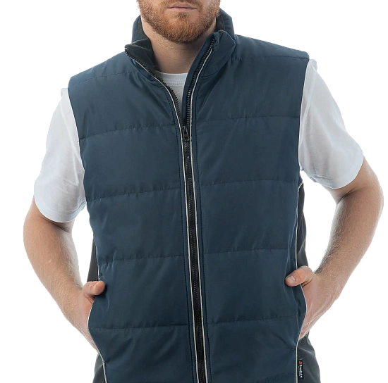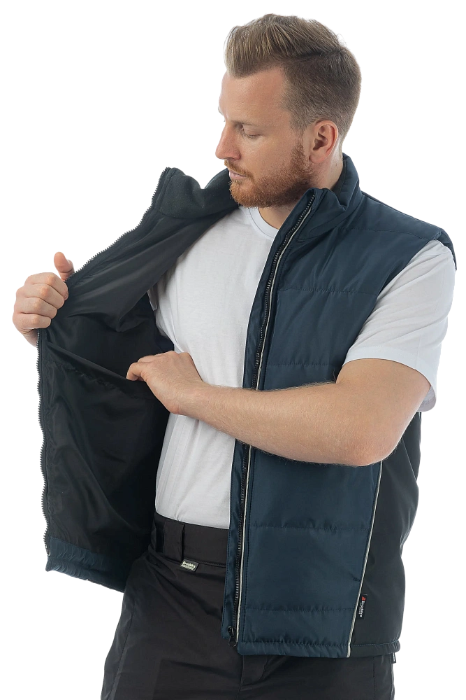 Утеплённый жилет на молнии из ткани с водоотталкивающей пропиткой. Подойдет как для работы на улице в демисезонный период или в прохладных помещениях, так и для использования в повседневной жизни.